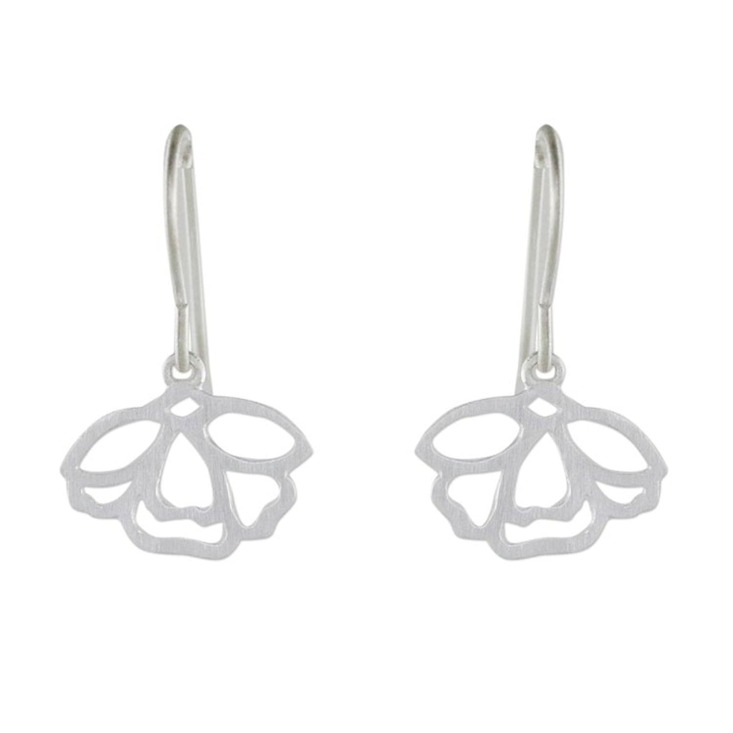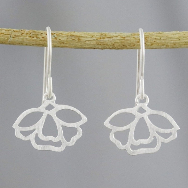 These Handmade Floral Satin Blooms Sterling Silver Dangle Earrings 'Tulip Blooms' are a delicate and expertly crafted accessory. Designed by Jantana, the earrings are handcrafted from .925 sterling silver and capture the grace of a perfectly blooming flower with curved, budding petals. The pieces, which balance delicacy and modern appeal, are a beautiful representation of the artisan's commitment to community and family tradition.