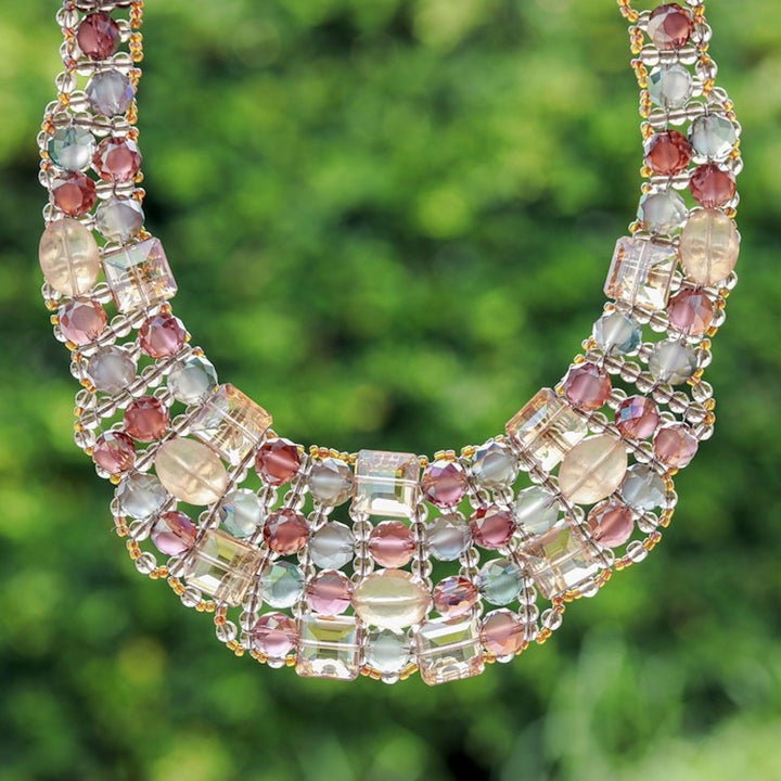 This Handmade Glass Beaded Choker Necklace in Warm Hues 'Crystallized Evenings' is an elegant and sublime accessory. Designed by Nareerat, the choker is crafted with glass beads that recreate an evening of glamour. The piece, which is a celebration of skill and heritage, is a beautiful representation of the artisan's mission to keep the art of handmade jewelry alive.