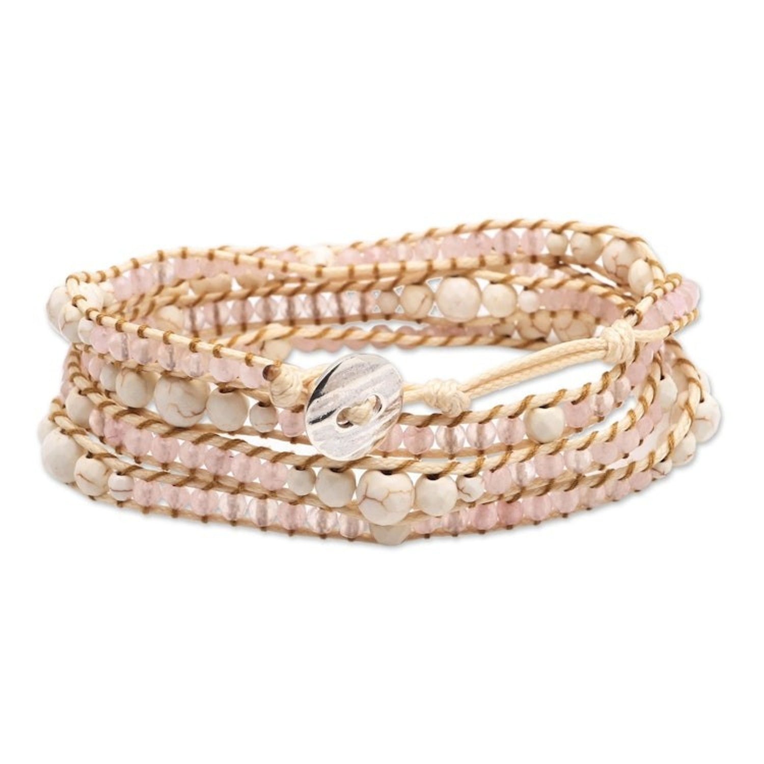 Handmade Howlite and Rose Quartz Beaded Wrap Bracelet 'Baby Cheeks'