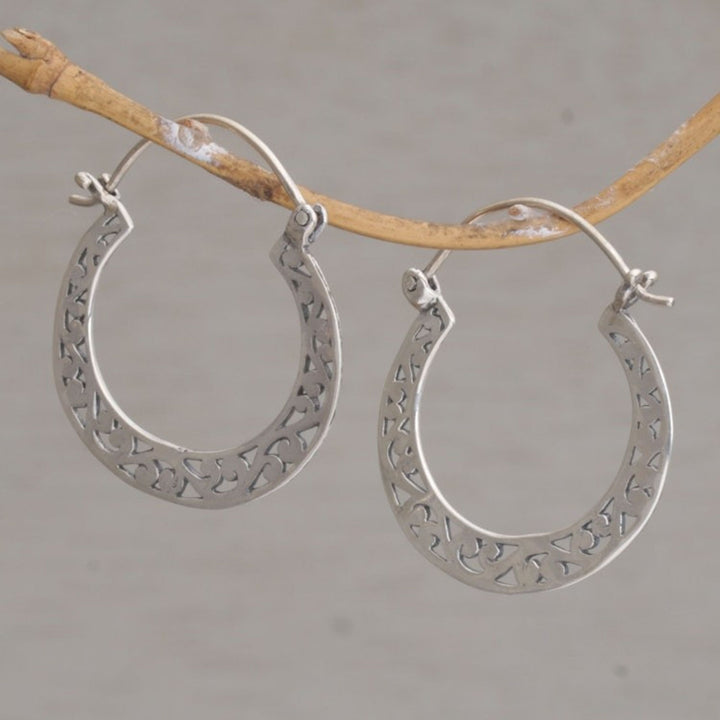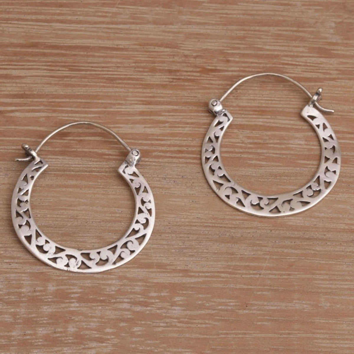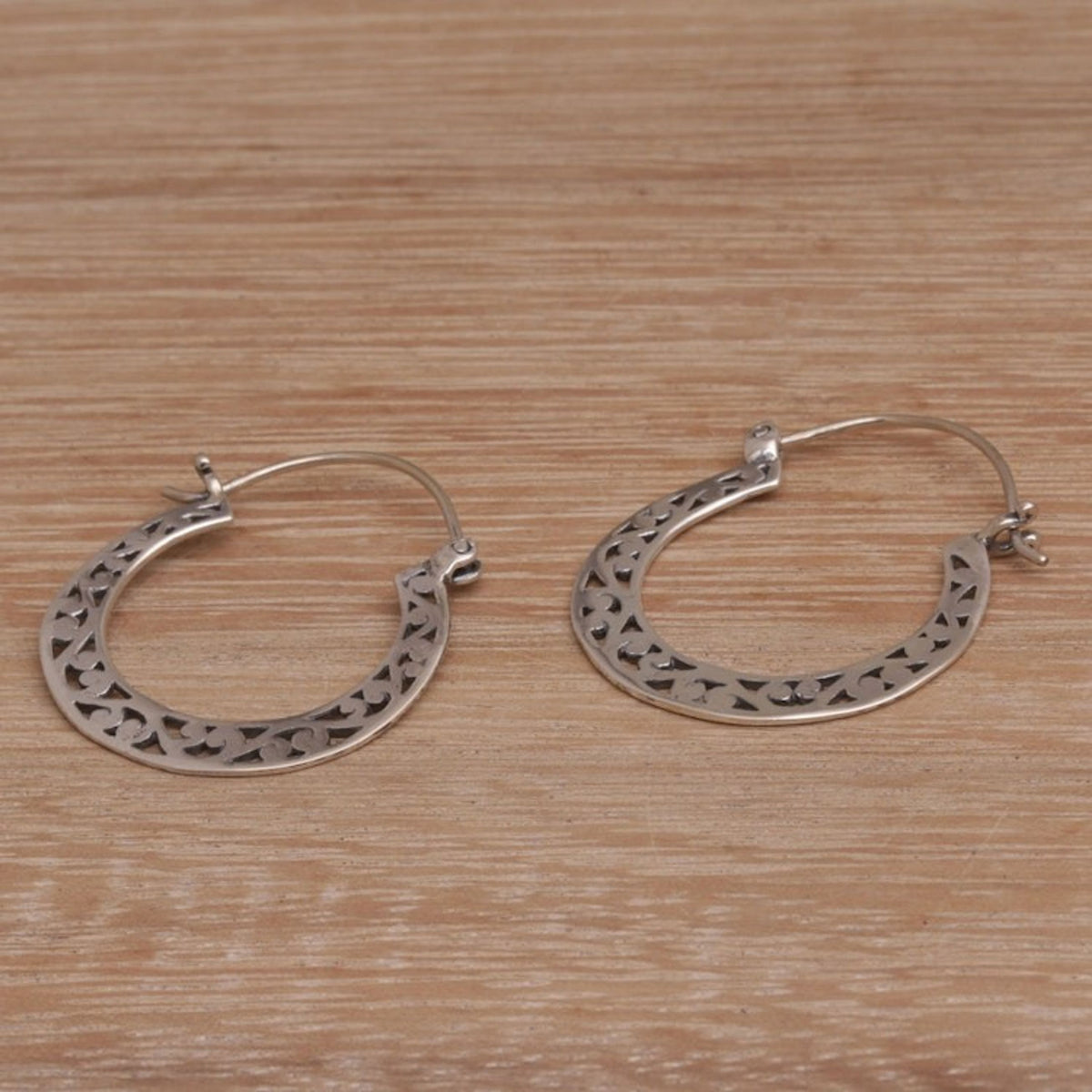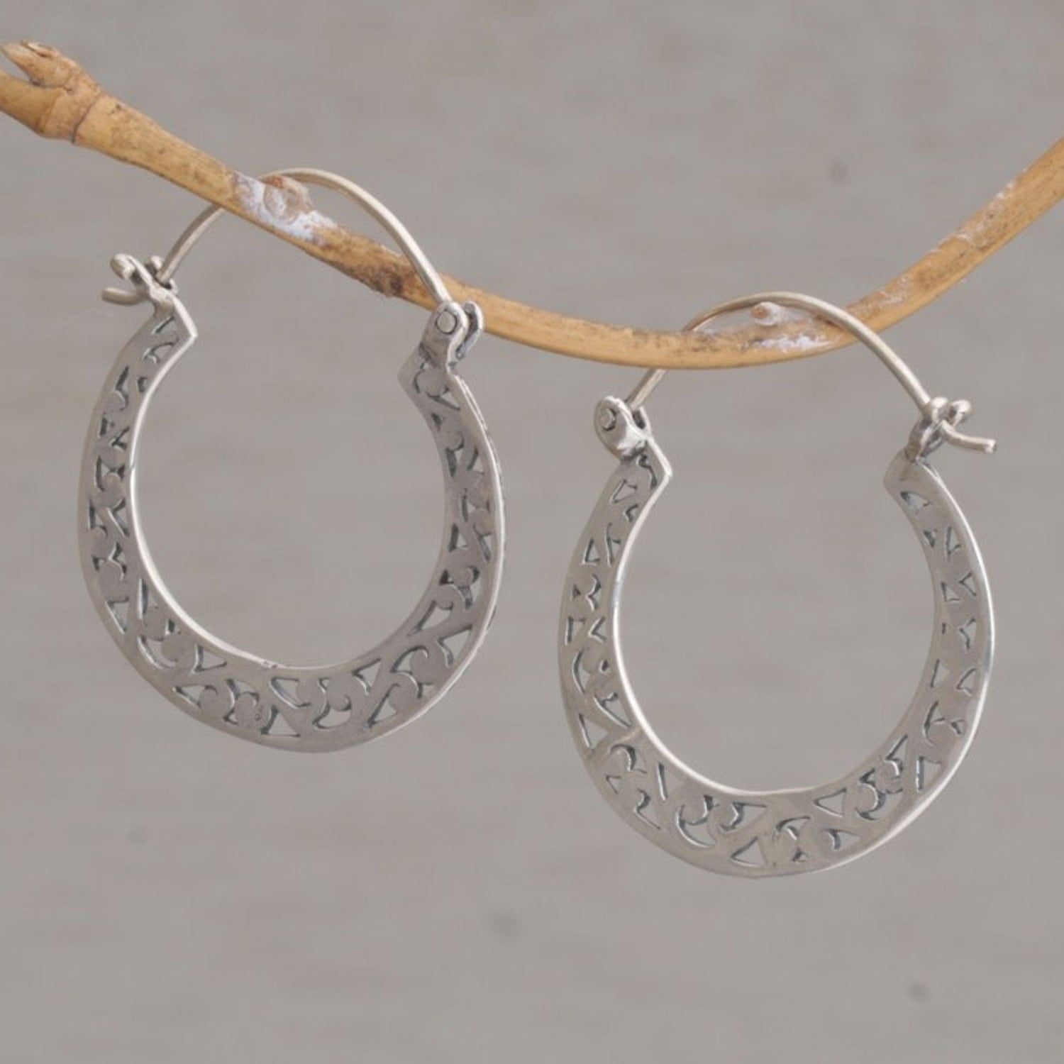 These Handmade Indonesian 925 Sterling Silver Horseshoe Earrings 'Half Time' are beautiful and intricate accessories. Designed by Yuniati, these horseshoe-shaped hoop earrings are cast with an intricate design motif and finished with a high polish. The pieces, which reflect nature's beauty and her island's heritage, are a beautiful representation of the artisan's passion for jewelry-making.