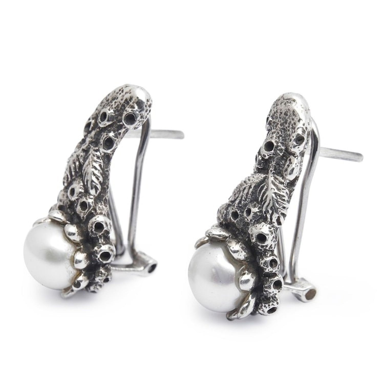 Handcrafted in Indonesia with sterling silver and cultured freshwater pearls. Each earring measures 0.8 inches in length and 0.7 inches in width.