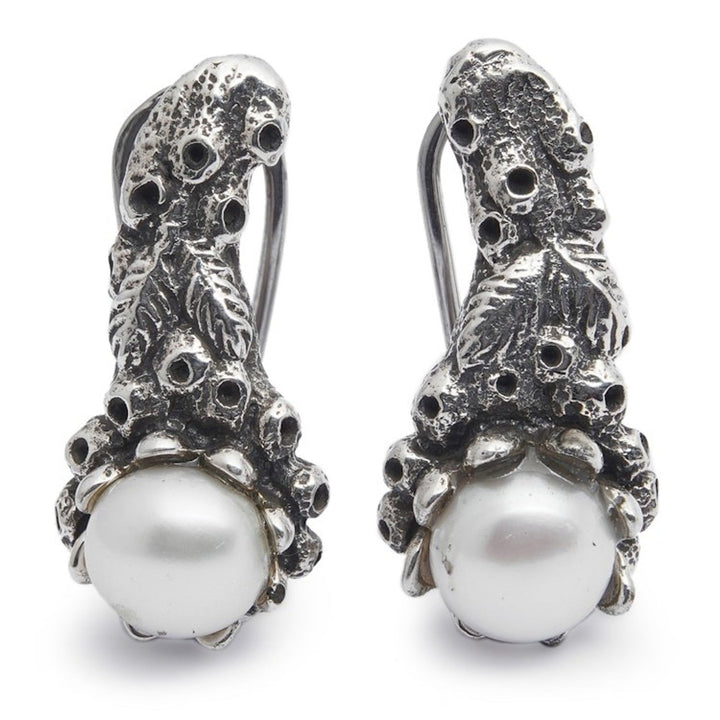 Handmade Pearl and Silver Drop Earrings 'Coral Reef'