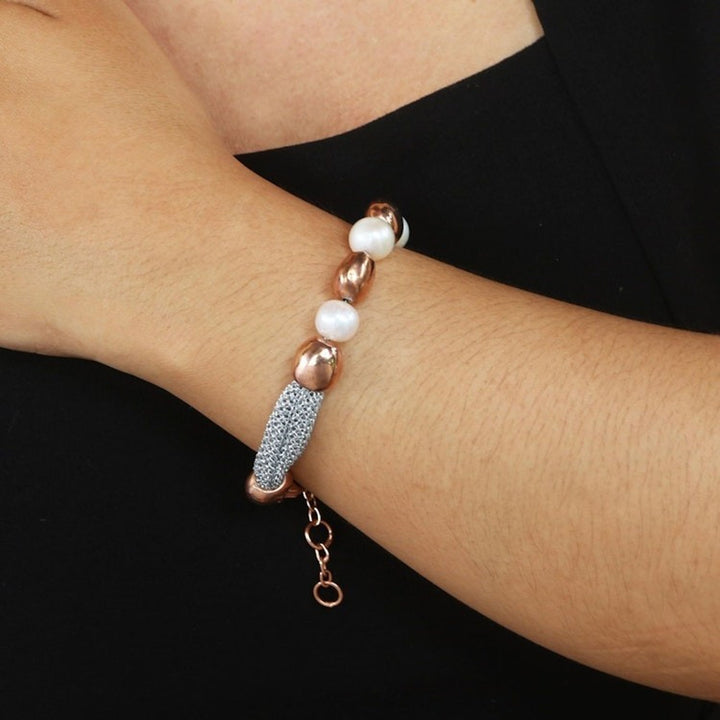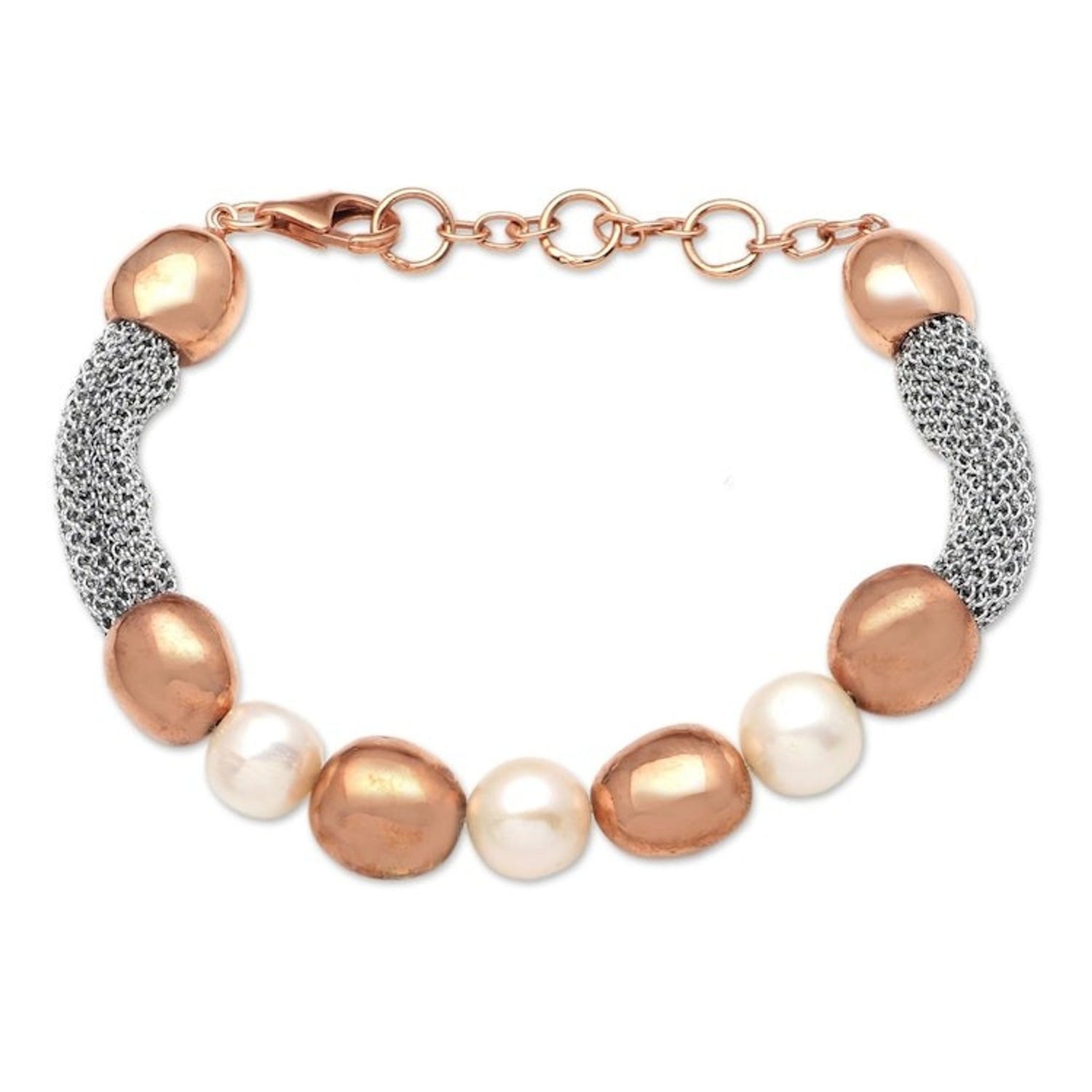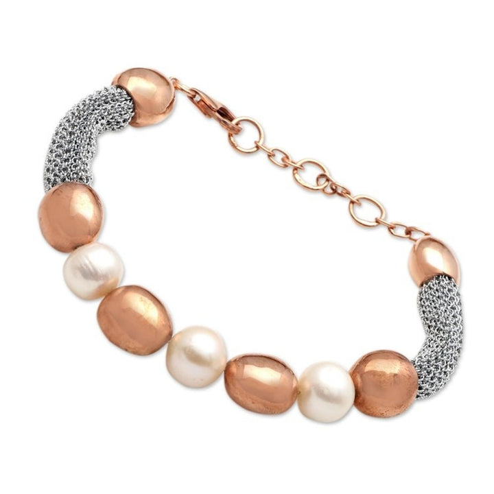 Handmade Rose Gold-Plated Cultured Pearl Beaded Bracelet 'Golden Waters'