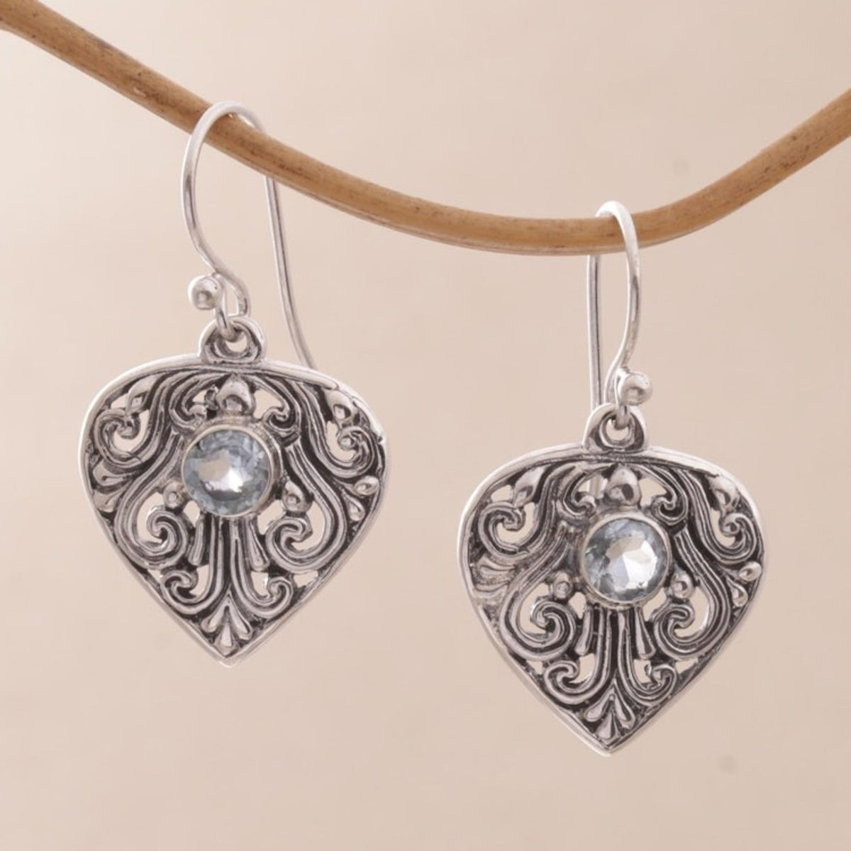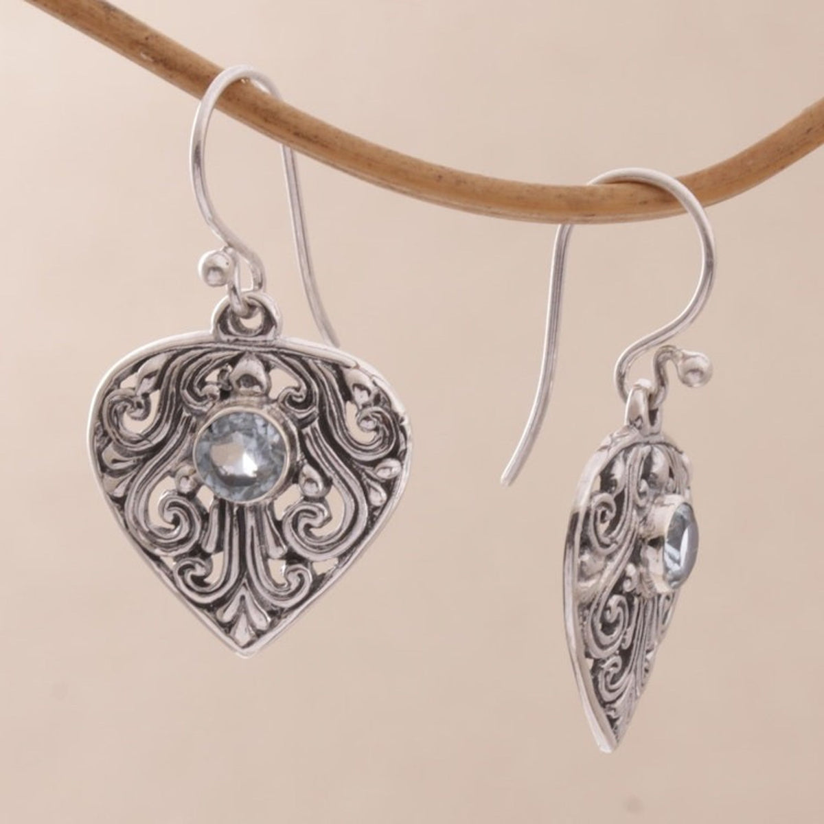 Handmade Sterling Silver and Blue Topaz Dangle Earrings 'Crest of Vines'