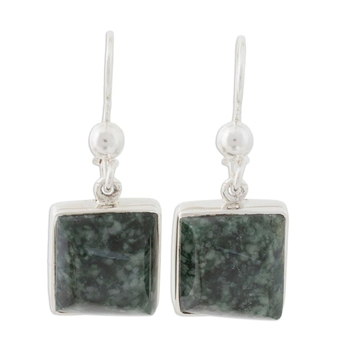 Handcrafted in Guatemala with sterling silver and jade. Each earring measures 1.2 inches in length and 0.6 inches in width. They have a high-polish finish.