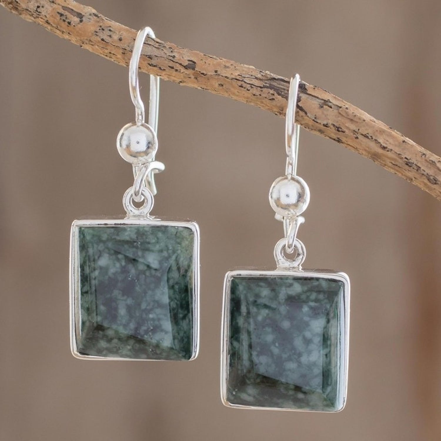 Handmade Sterling Silver Dangle Jade Earrings 'Love Immortal'