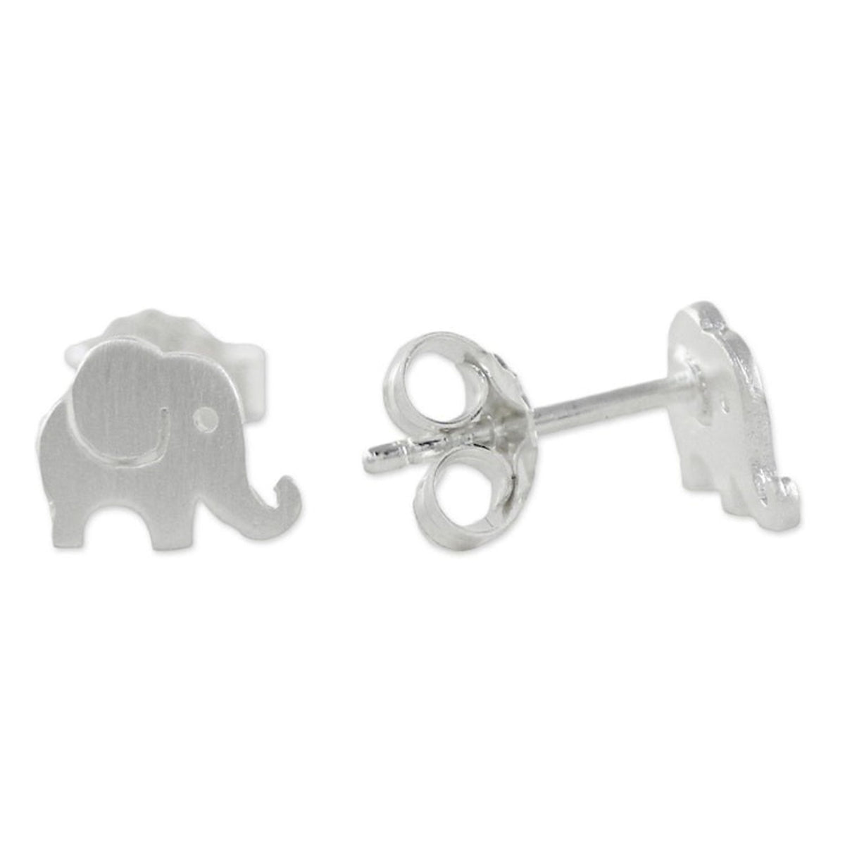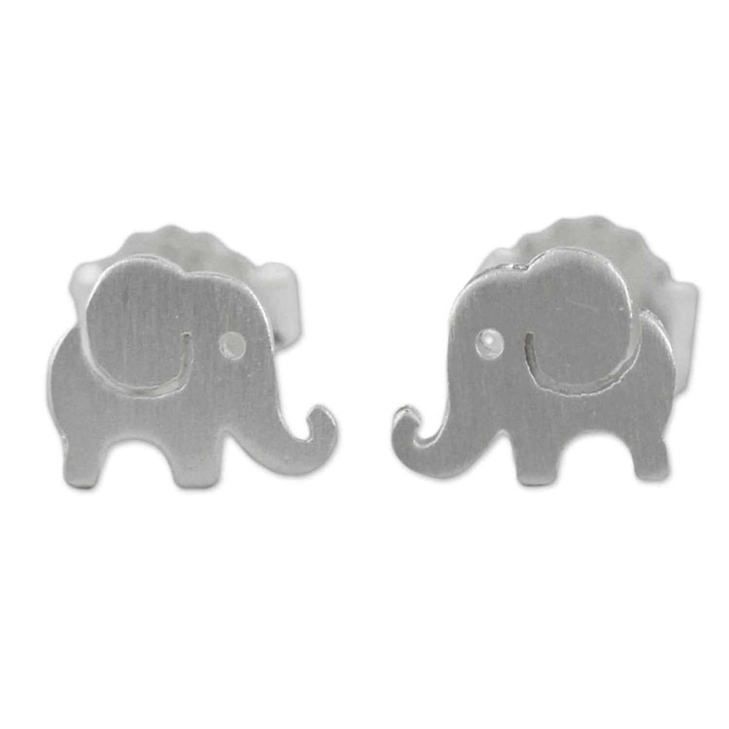 Handmade Thai Sterling Silver Post Elephant Earrings 'Endearing Elephants'