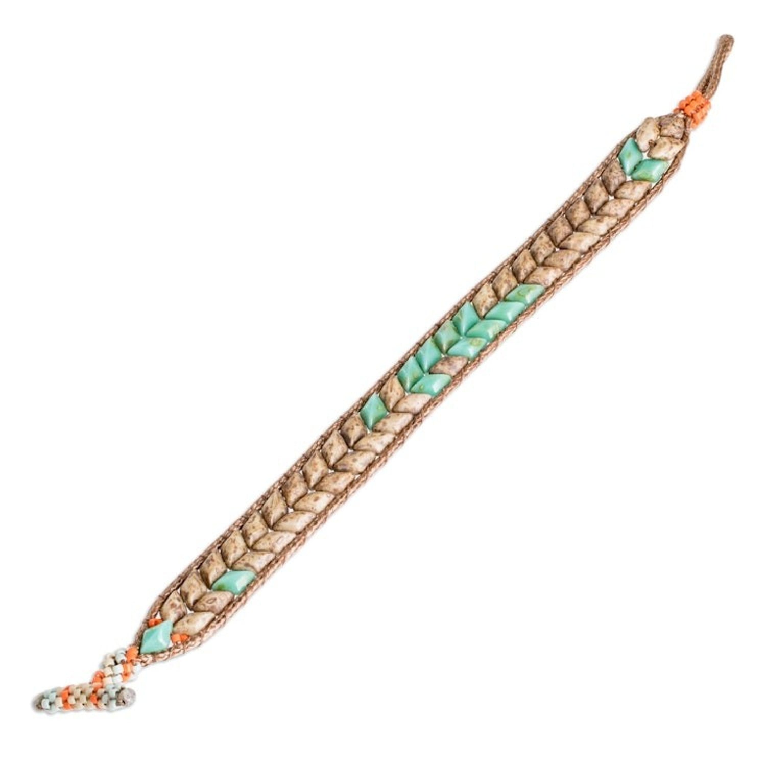Handmade Turquoise and Brown Glass Beaded Wristband Bracelet 'Serene Current'