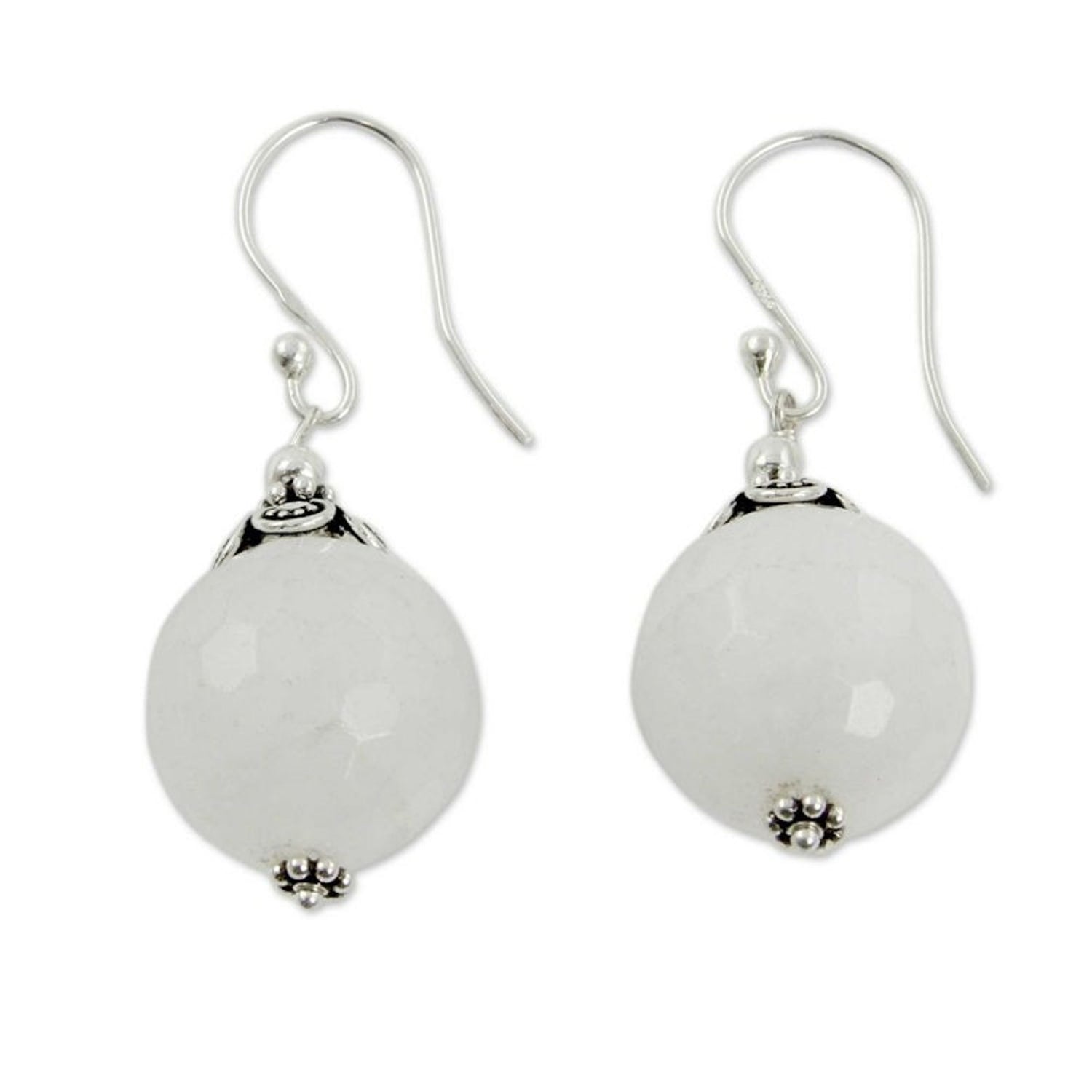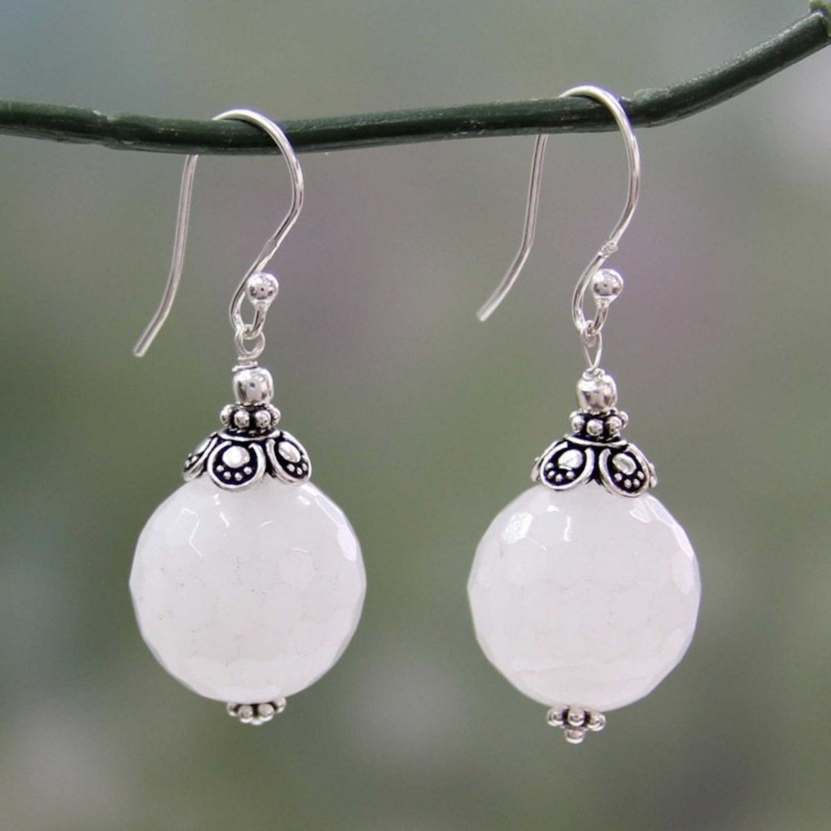 Handmade White Chalcedony and Silver Earrings from India 'Glorious White'