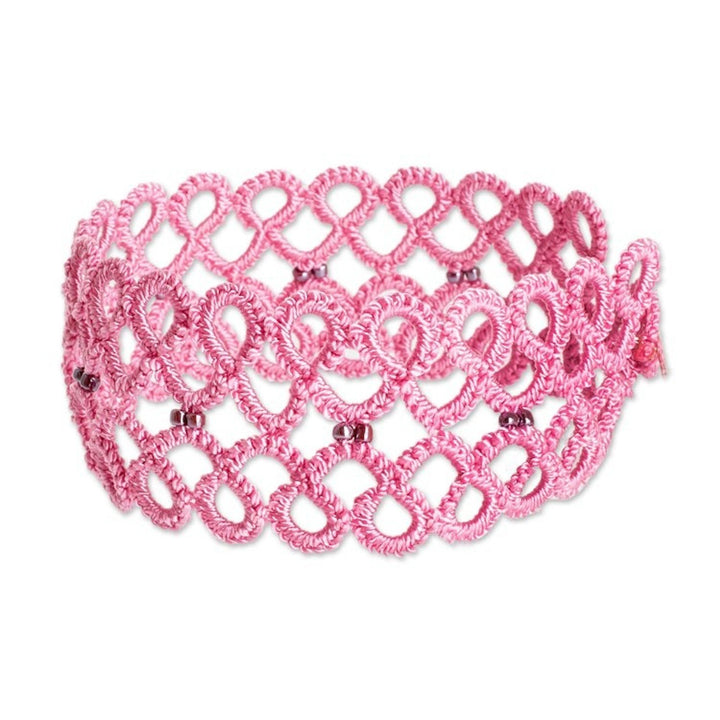 Handwoven Pink Wristband Bracelet with Glass Beads 'Gleams of Sweetness'