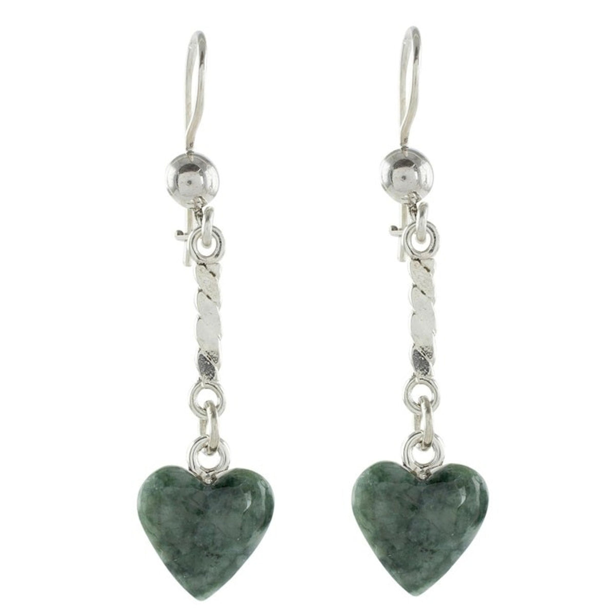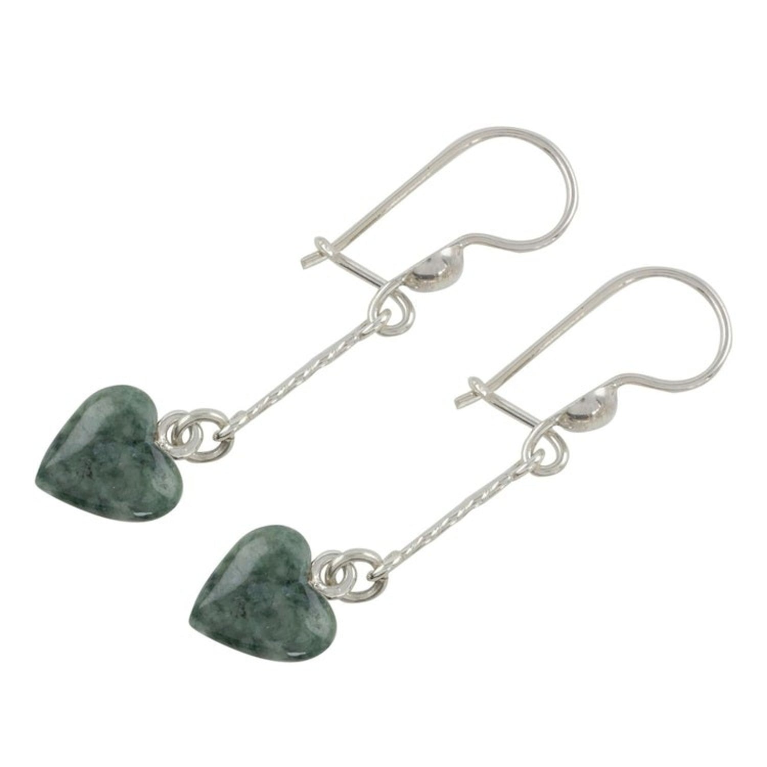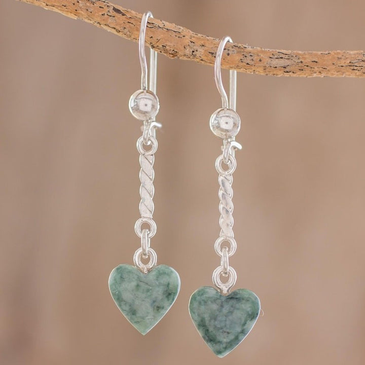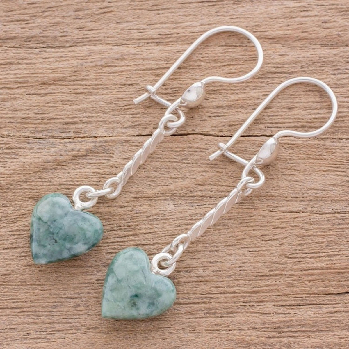 Heart-Shaped Green Jade Dangle Earrings from Guatemala 'Green Spirals of Love'
