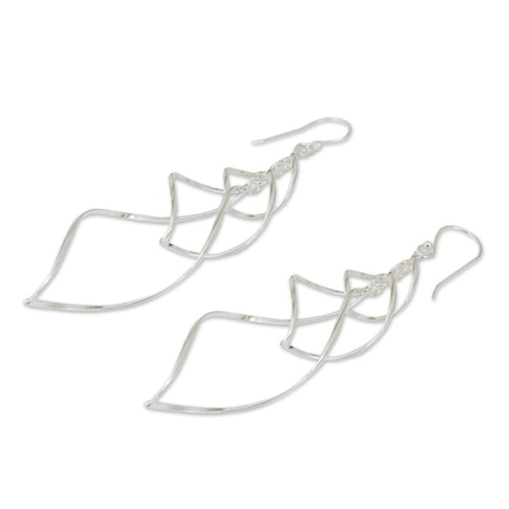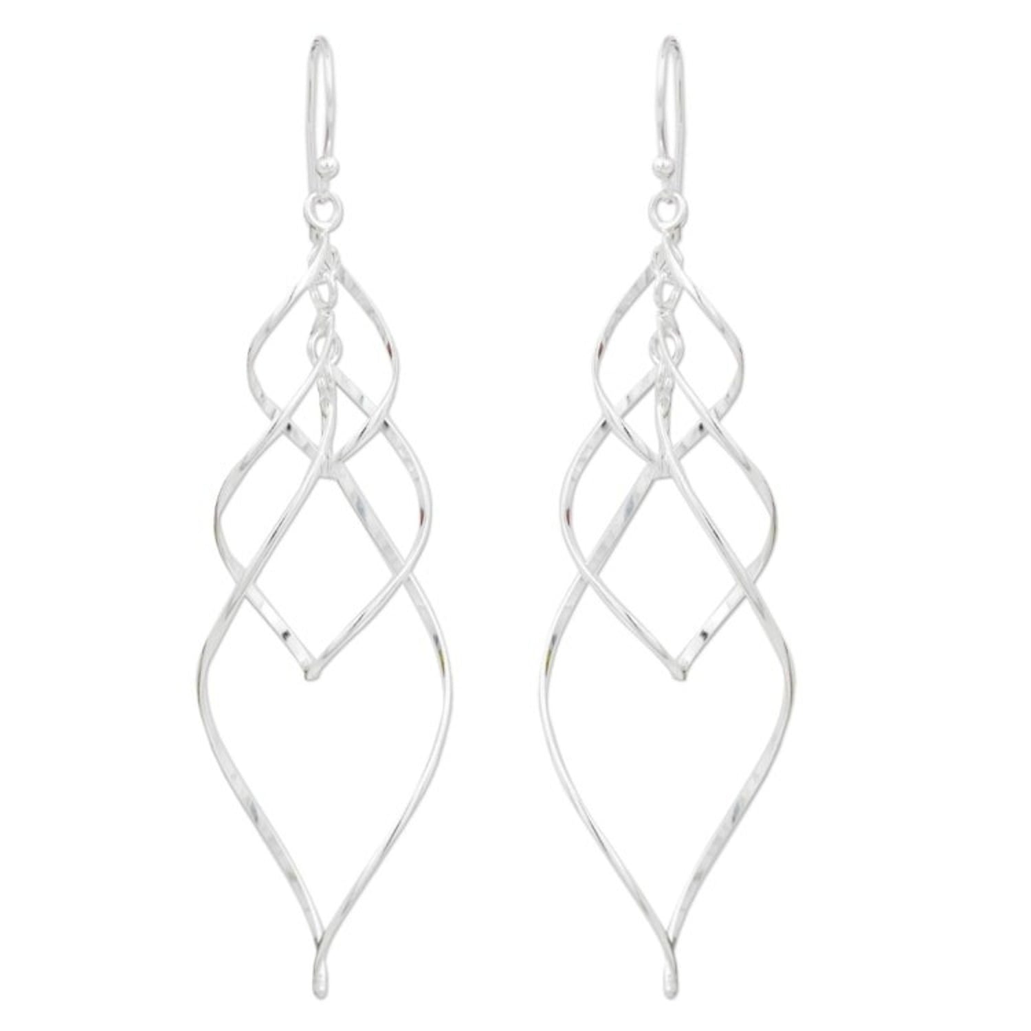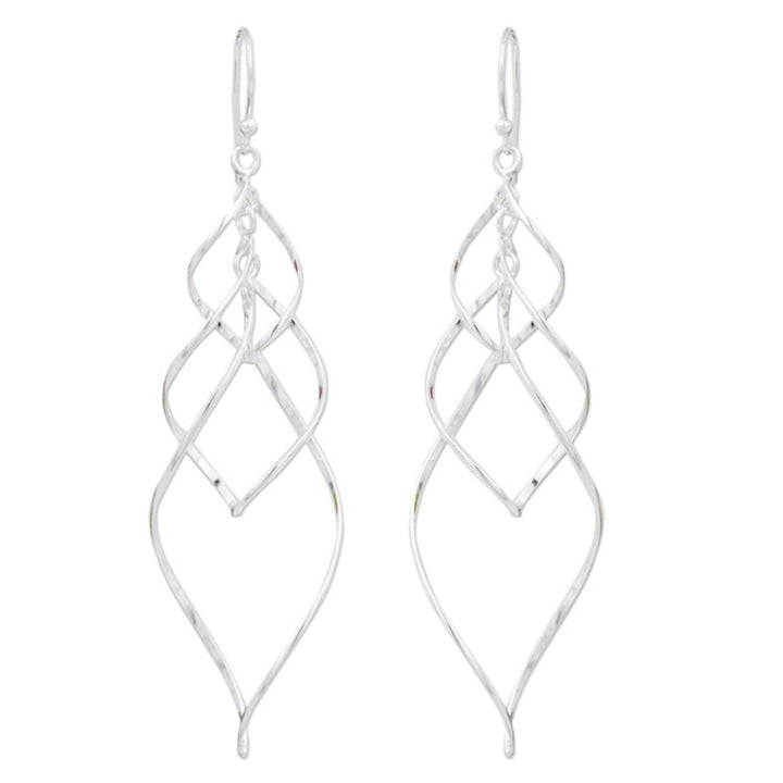 These Helix Design Dangle Earrings in 925 Sterling Silver 'Forever Linked' are a contemporary and unique accessory. Designed by Pichaya, the dangle earrings feature triple helixes crafted from polished sterling silver that are linked forever. The pieces, which reflect both her heritage and her vision, are a beautiful representation of the artisan's accessible, comfortable, and joyful designs.