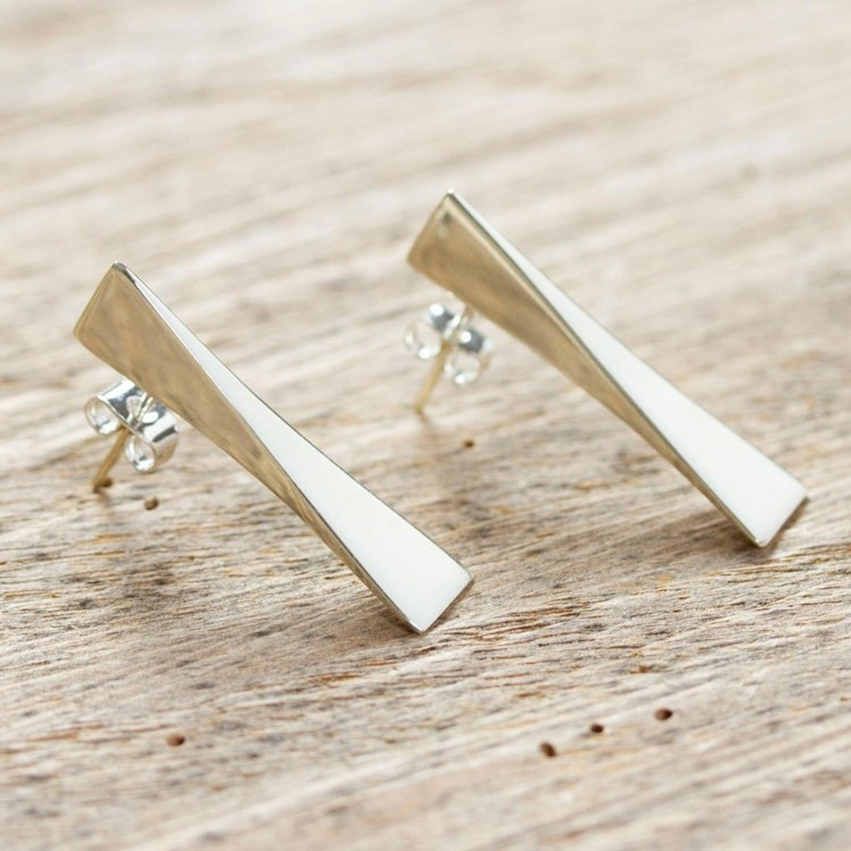 Handcrafted in Mexico with .950 silver. Each earring measures 1.3 inches in length and 0.3 inches in width. They have a high-polish finish.
