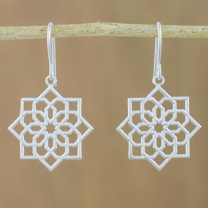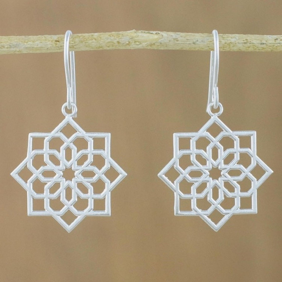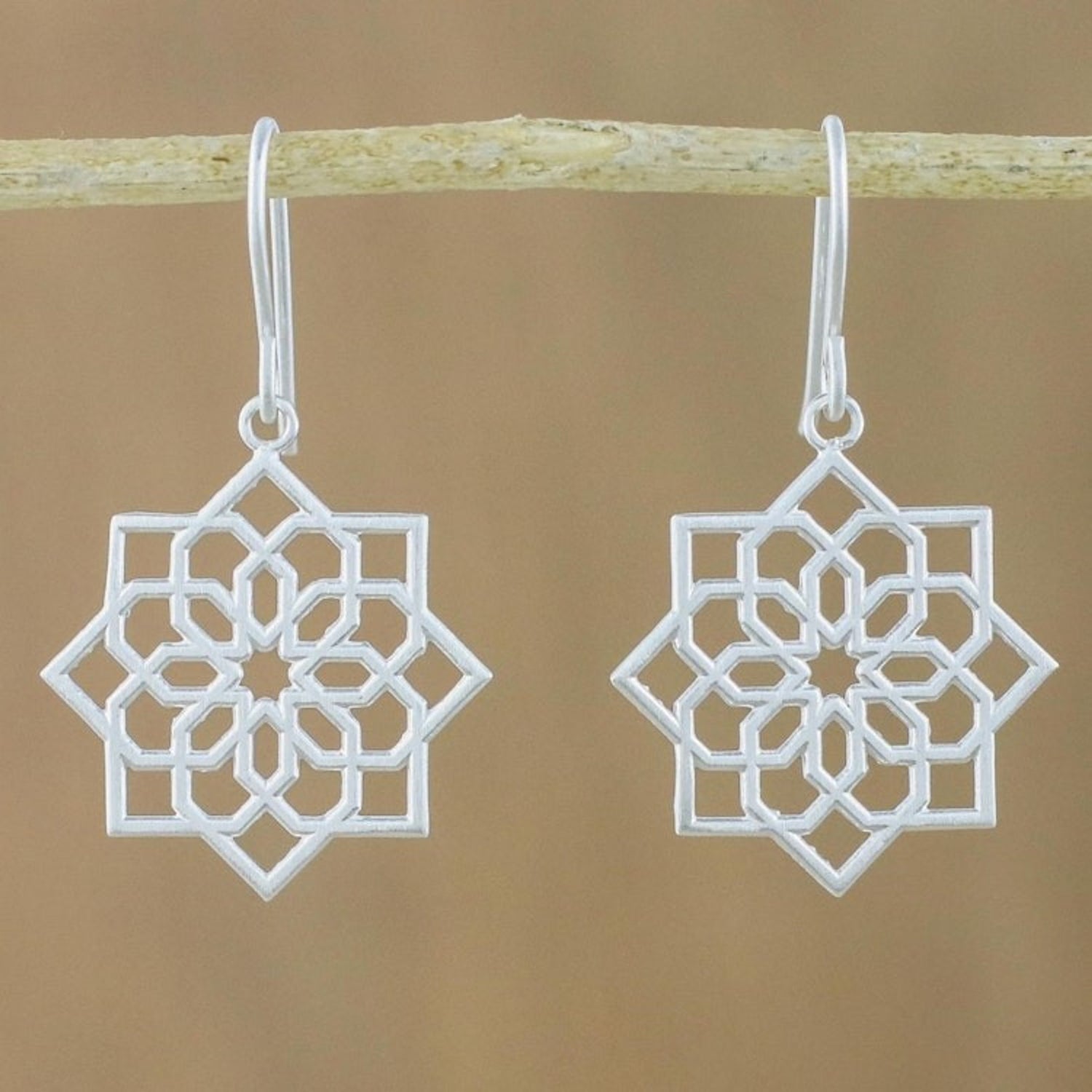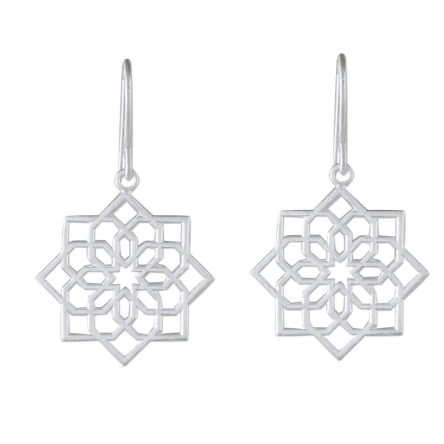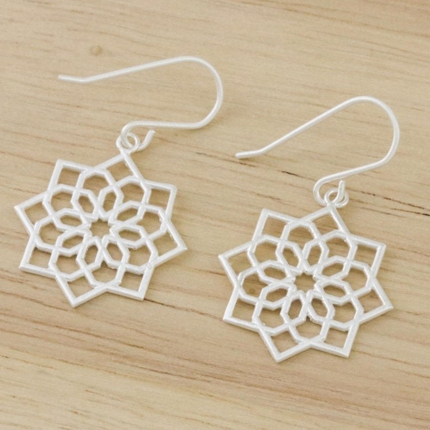 Hexagonal Mandala Sterling Silver Dangle Earrings 'Hexagonal Mandala'