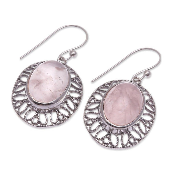 High Polished Floral Natural Rose Quartz Dangle Earrings 'Unconditional Lotus'