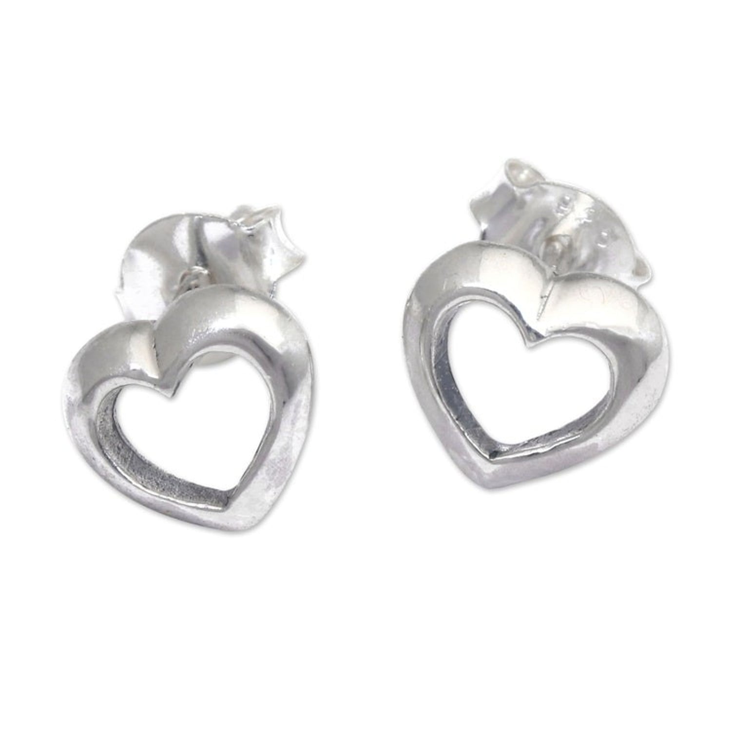 These High-Polished Heart-Shaped Sterling Silver Stud Earrings 'Double Love' are a charming and romantic accessory. Designed by Anya, the heart-shaped stud earrings are crafted from sterling silver and have a high-polish finish that enriches the design's passionate aura. The pieces, which blend simplicity, animal motifs, and traditional Balinese designs, are a beautiful representation of the artisan's optimism and patience.