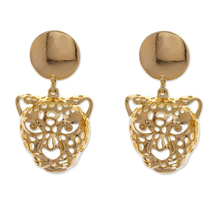 High-Polished Jaguar-Themed 24k Gold-Plated Dangle Earrings 'Divine Jaguar'