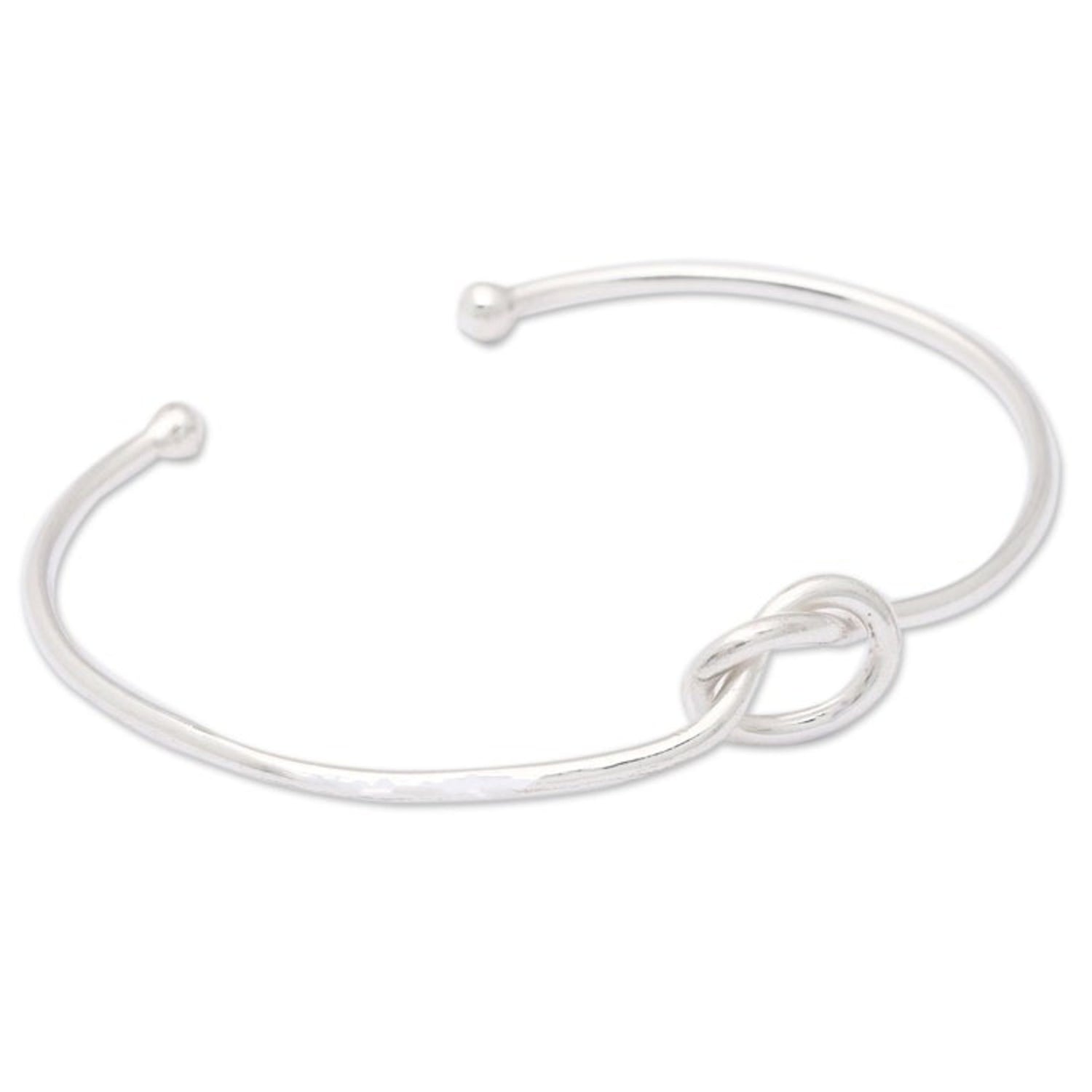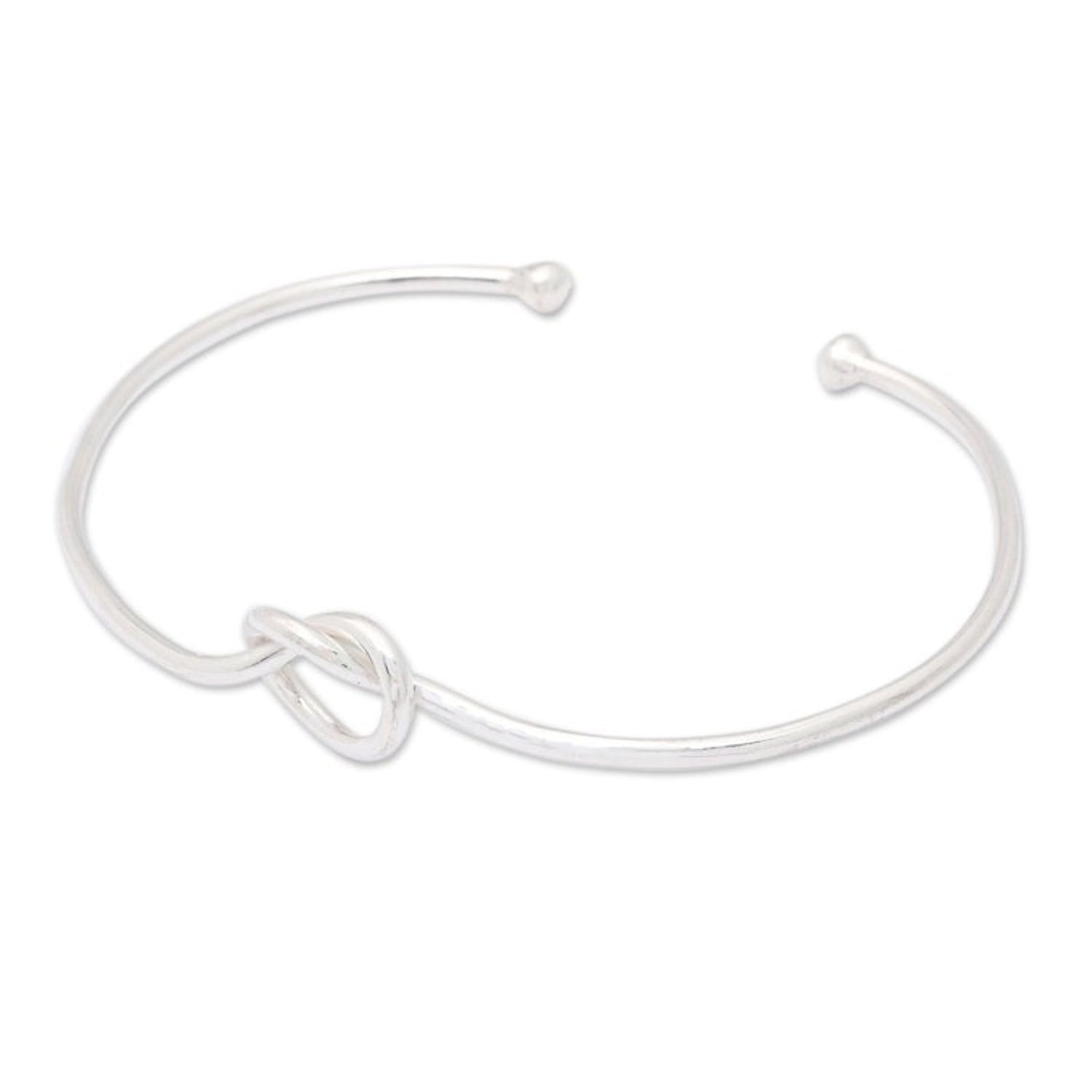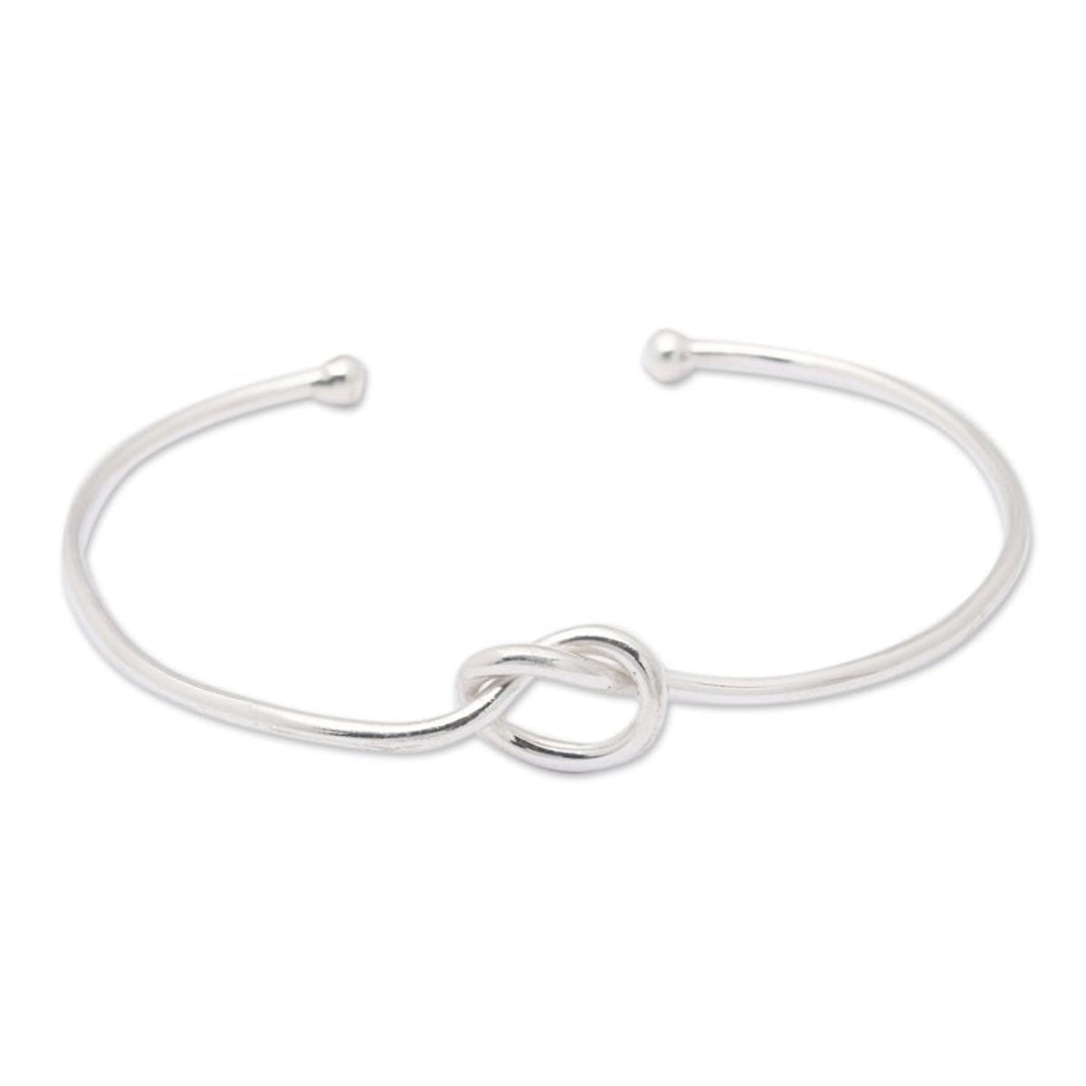 High-Polished Minimalist Knot Sterling Silver Cuff Bracelet 'Twisted Directions'