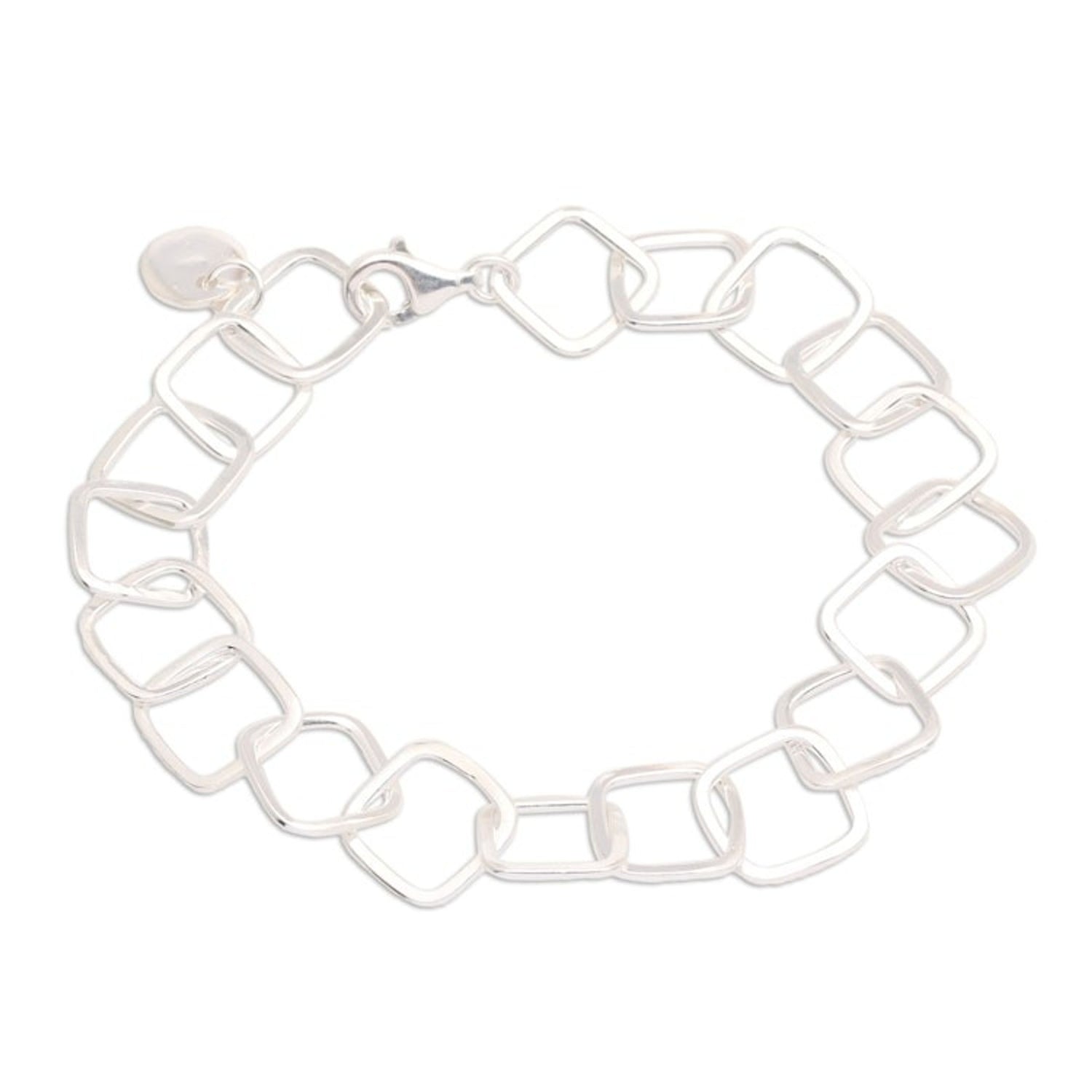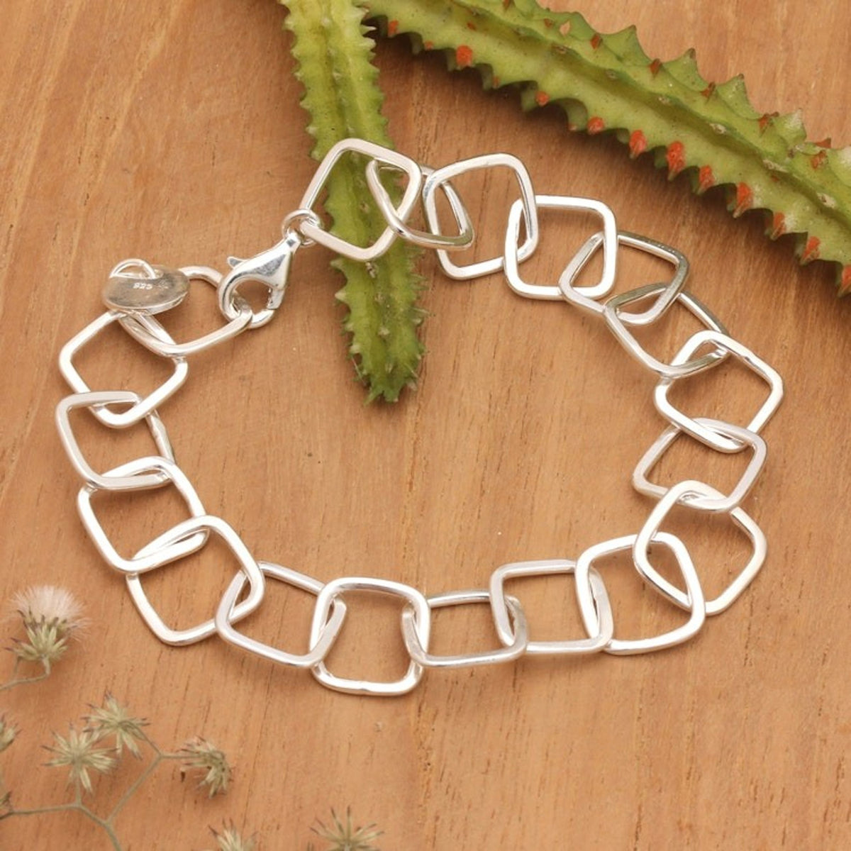 High Polished Square-Shaped Sterling Silver Link Bracelet 'Square Promise'