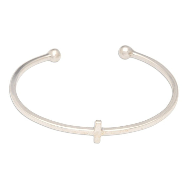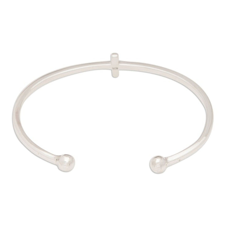 This High Polished Sterling Silver Cuff Bracelet from Bali 'Modern Globe-Trotting' is a modern and adventurous accessory. Designed by Griya Suarningsih, this sterling silver cuff bracelet features two orbs at each end and a bar at the center as a minimalist touch. The piece, which is rooted in Bali's cultural heritage yet attuned to evolving design trends, is a beautiful representation of the artisan's artistry, resilience, and continuity.