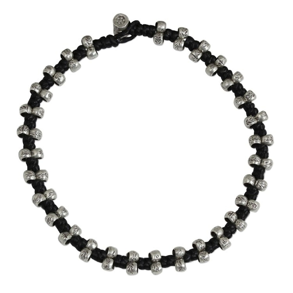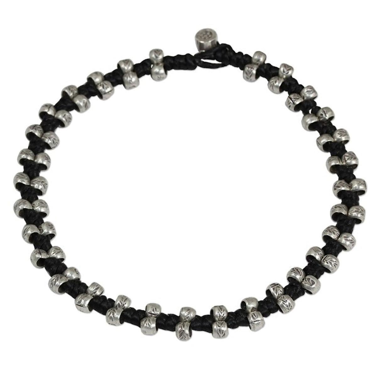 Handcrafted in Thailand with .950 silver and waxed polyester cord. The bracelet is 7.8 inches long. It has a combination finish.