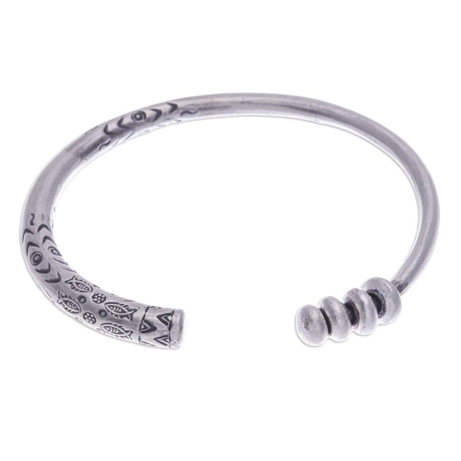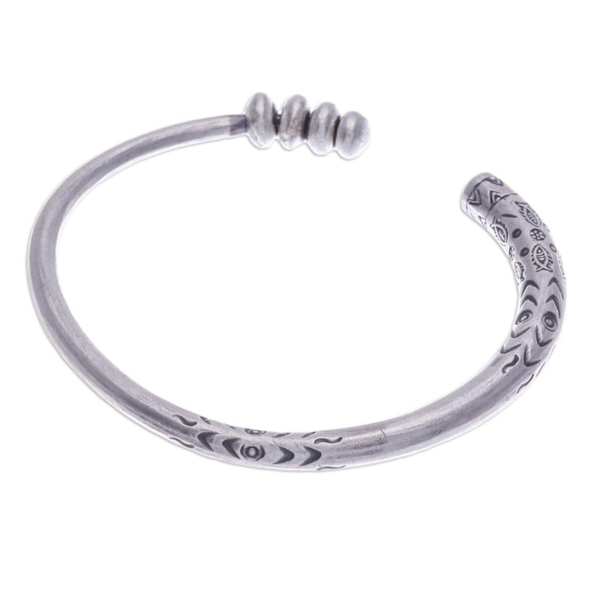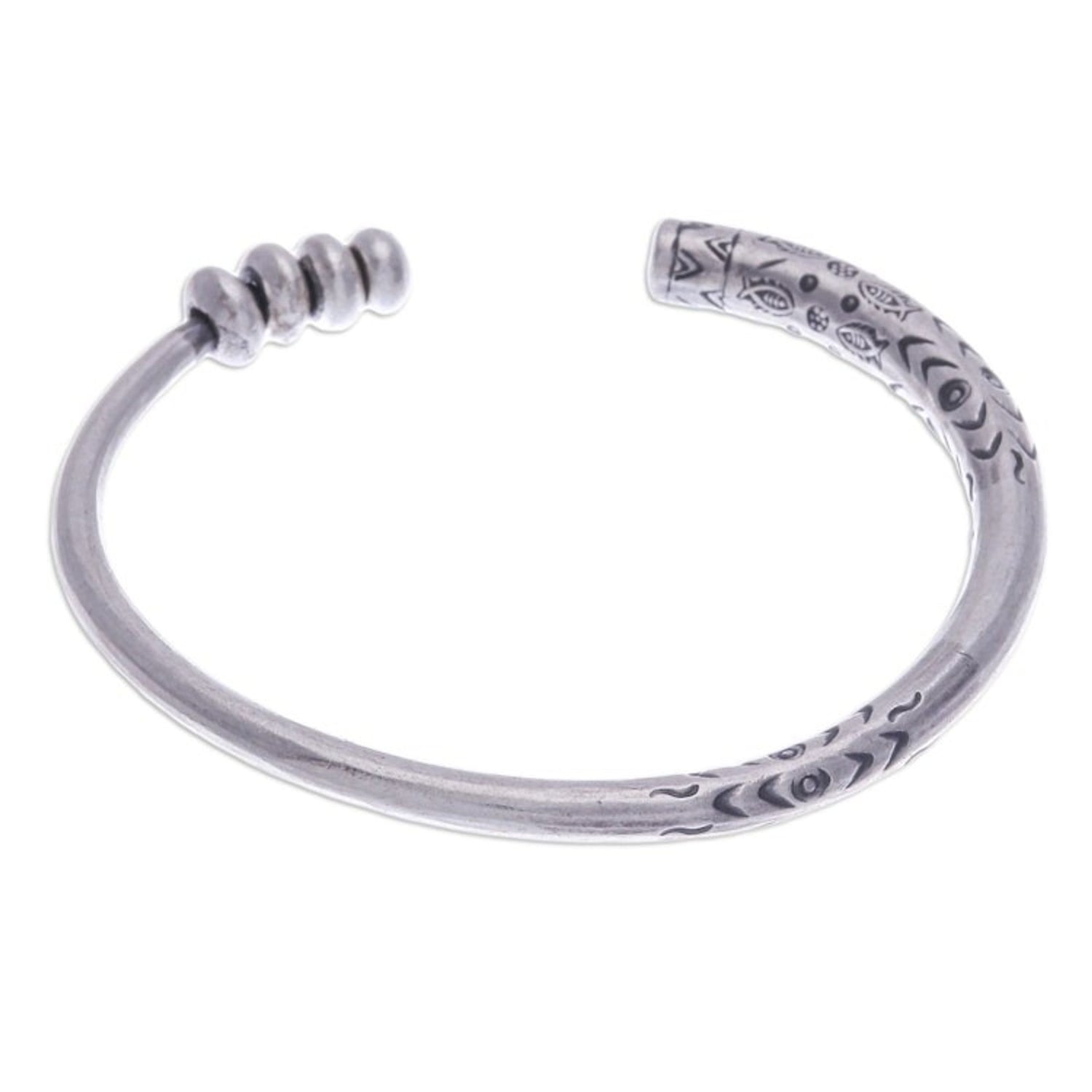 Hill Tribe-Themed Silver Cuff Bracelet Crafted in Thailand 'Celestial Halo'