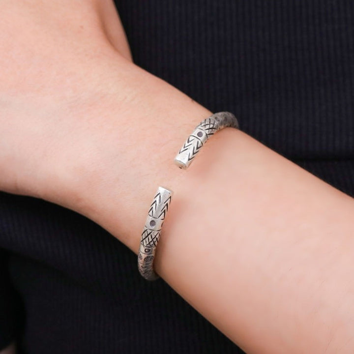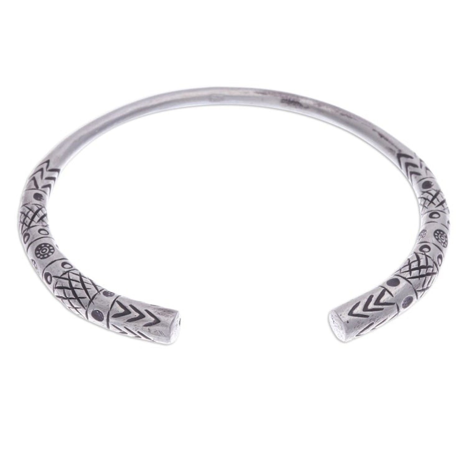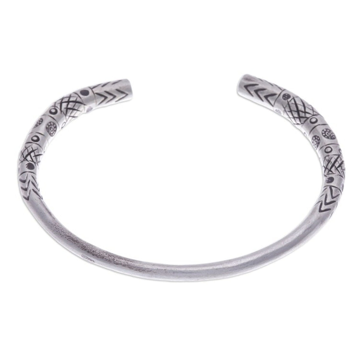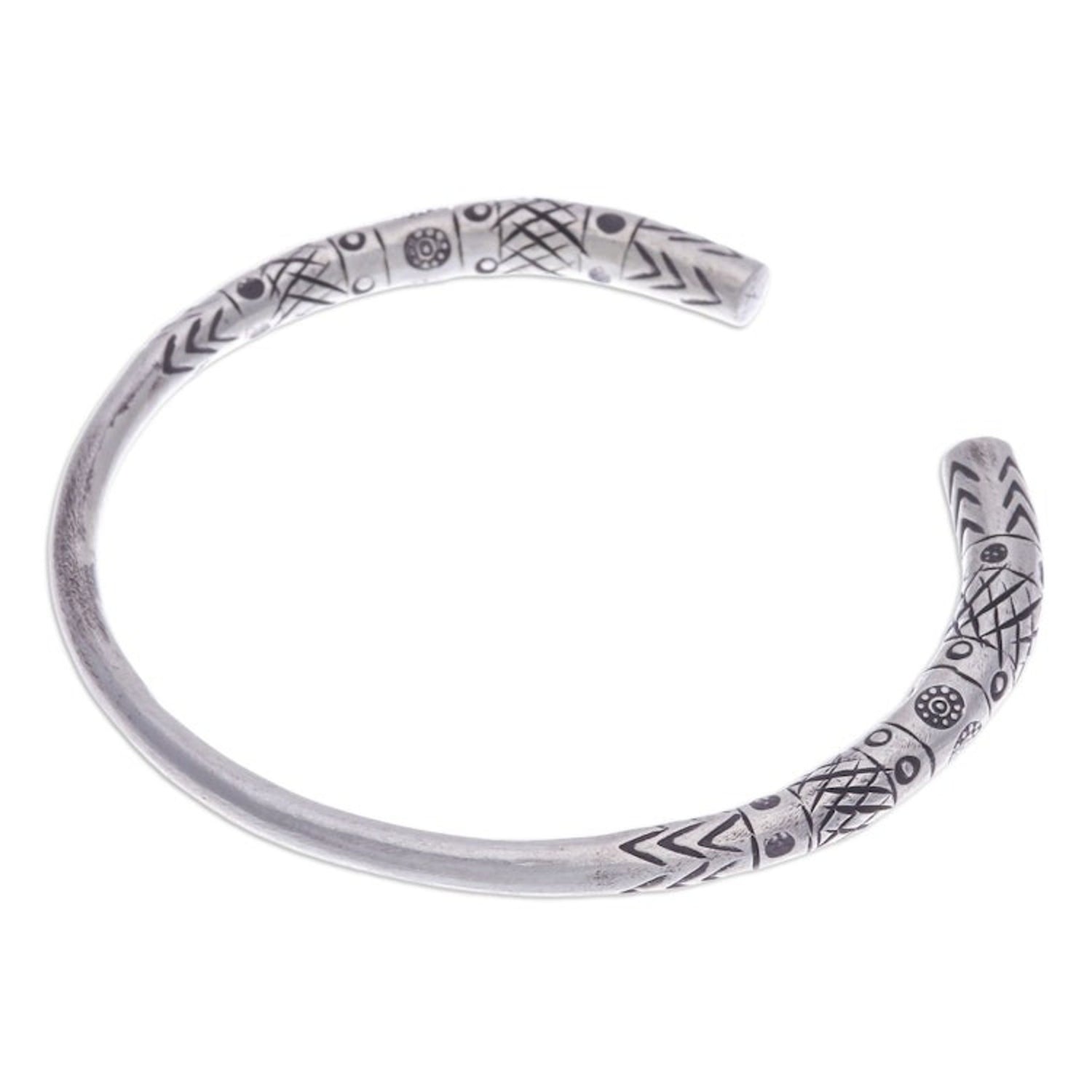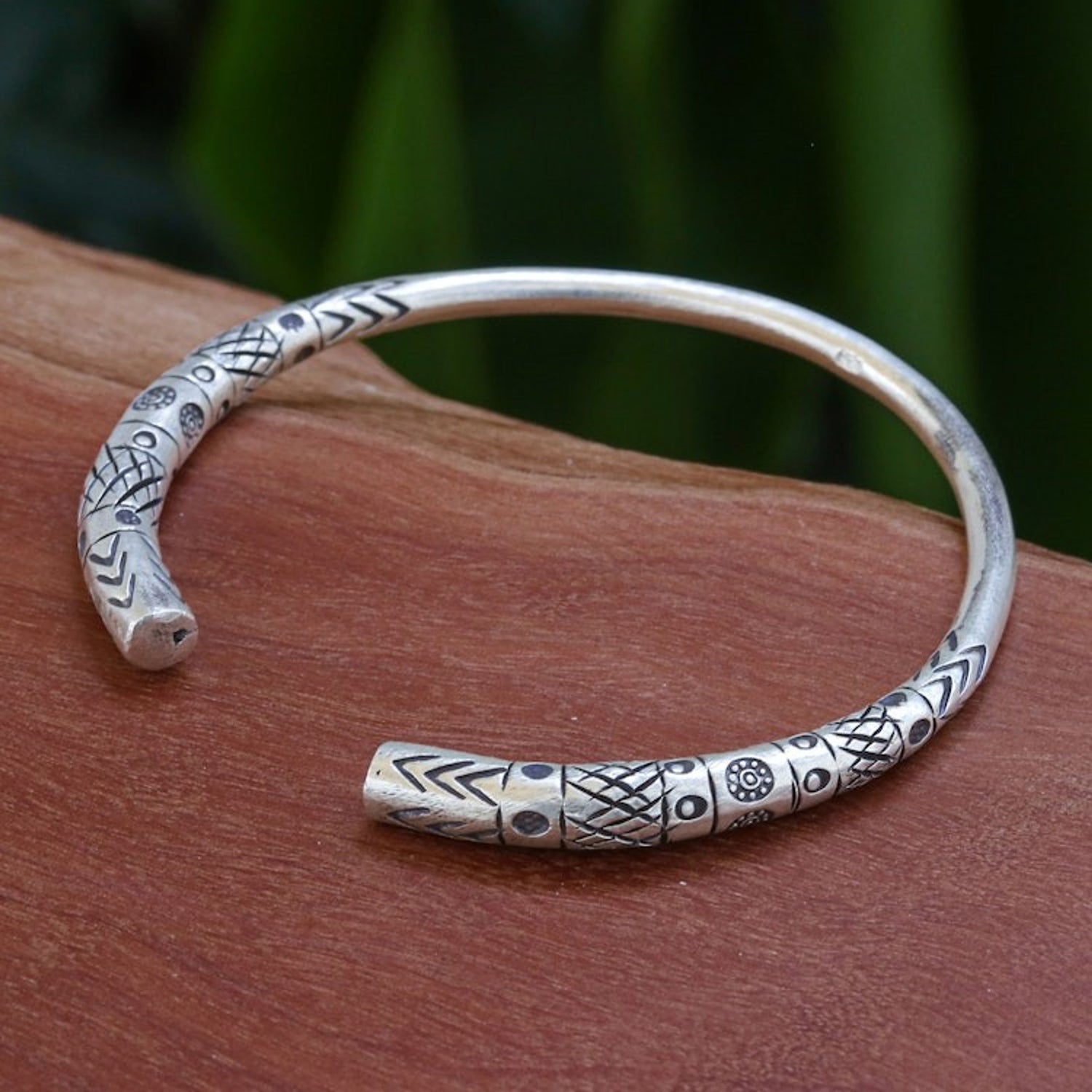 Hill Tribe-Themed Sterling Silver Cuff Bracelet 'Ancestral Halo'