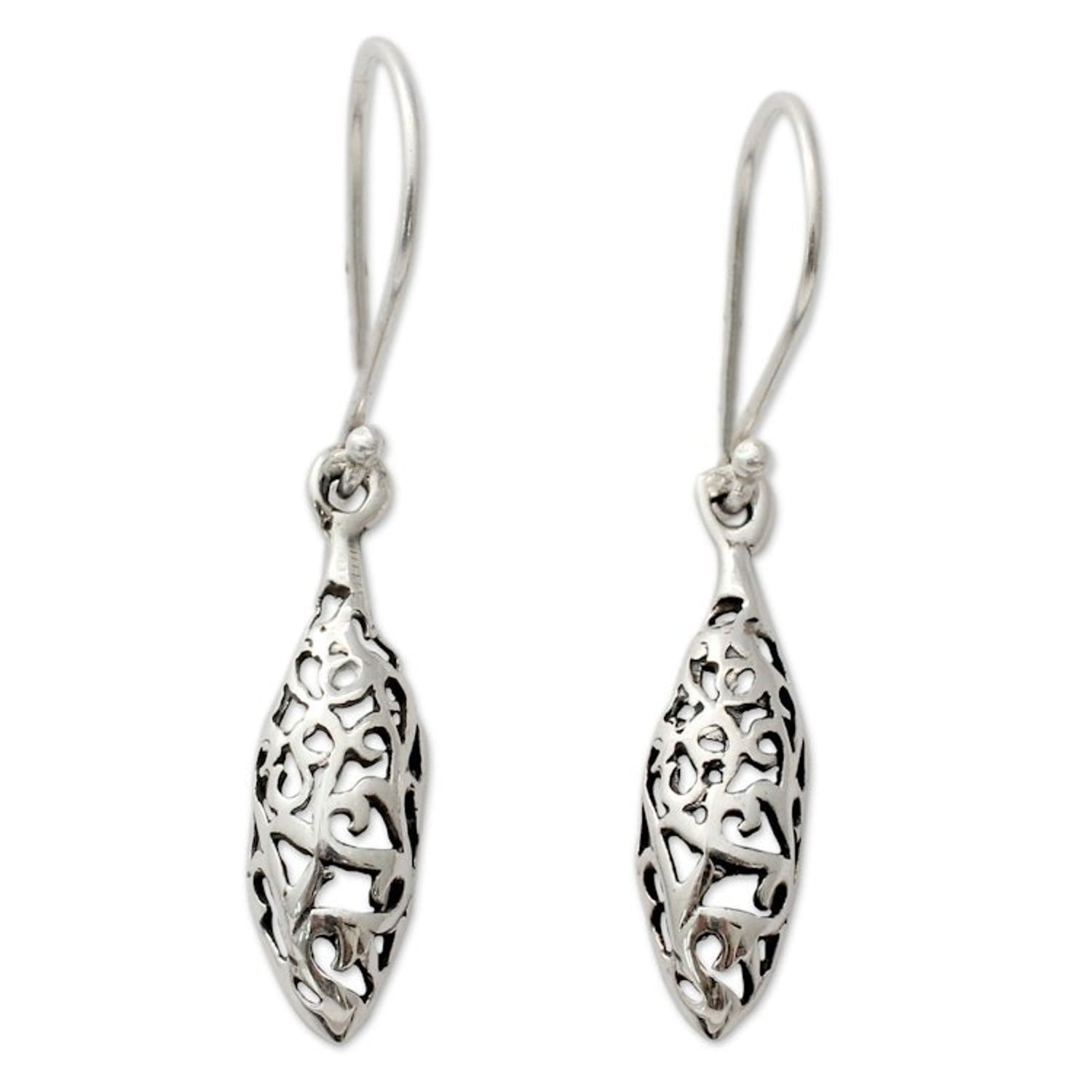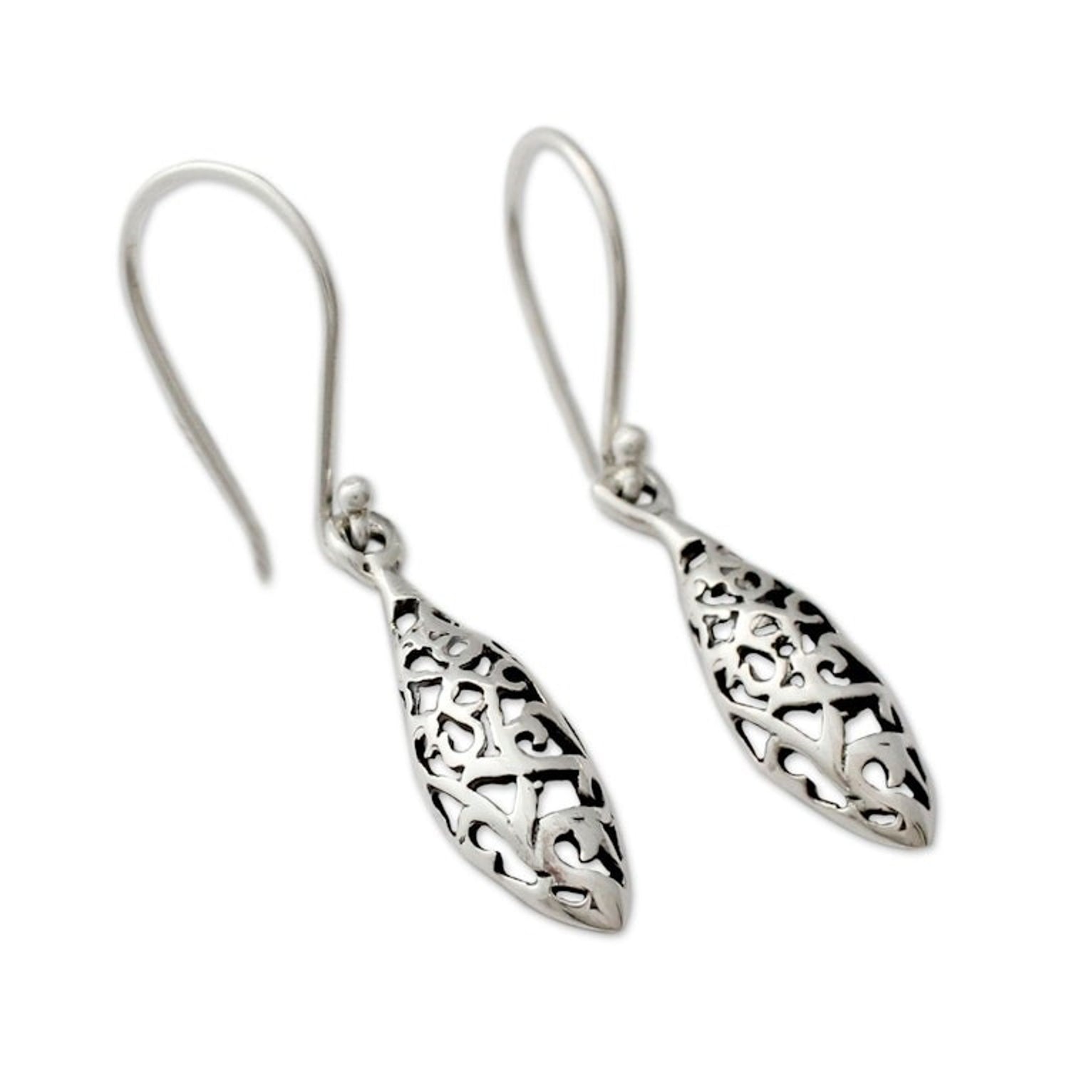 India Jali Handcrafted Sterling Silver Dangle Earrings 'Jali Dewdrop'