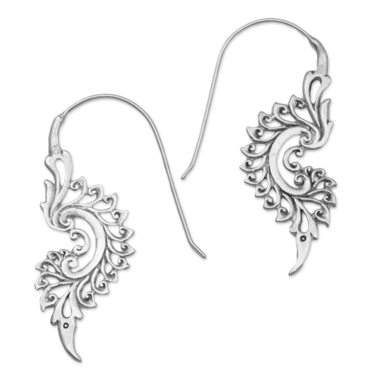 Handcrafted in Indonesia with .925 sterling silver. Each earring measures 2.2 inches in length and 0.8 inches in width. They have a combination finish.