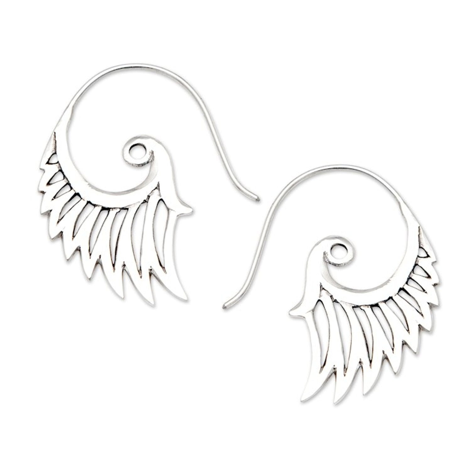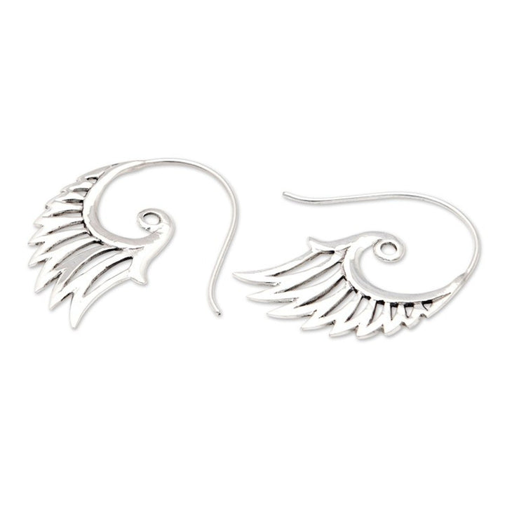 These Indonesian Handmade Sterling Silver Wing Drop Earrings 'Winged Beauty' are a stunning and unique accessory. Designed by Nyoman Rena, these drop earrings feature magnificent feathered wings in a half-hoop hook shape, with a magnificent openwork sterling silver design. The pieces, which capture both Balinese heritage and contemporary design, are a beautiful representation of the artisan's dedication to growth and innovation.