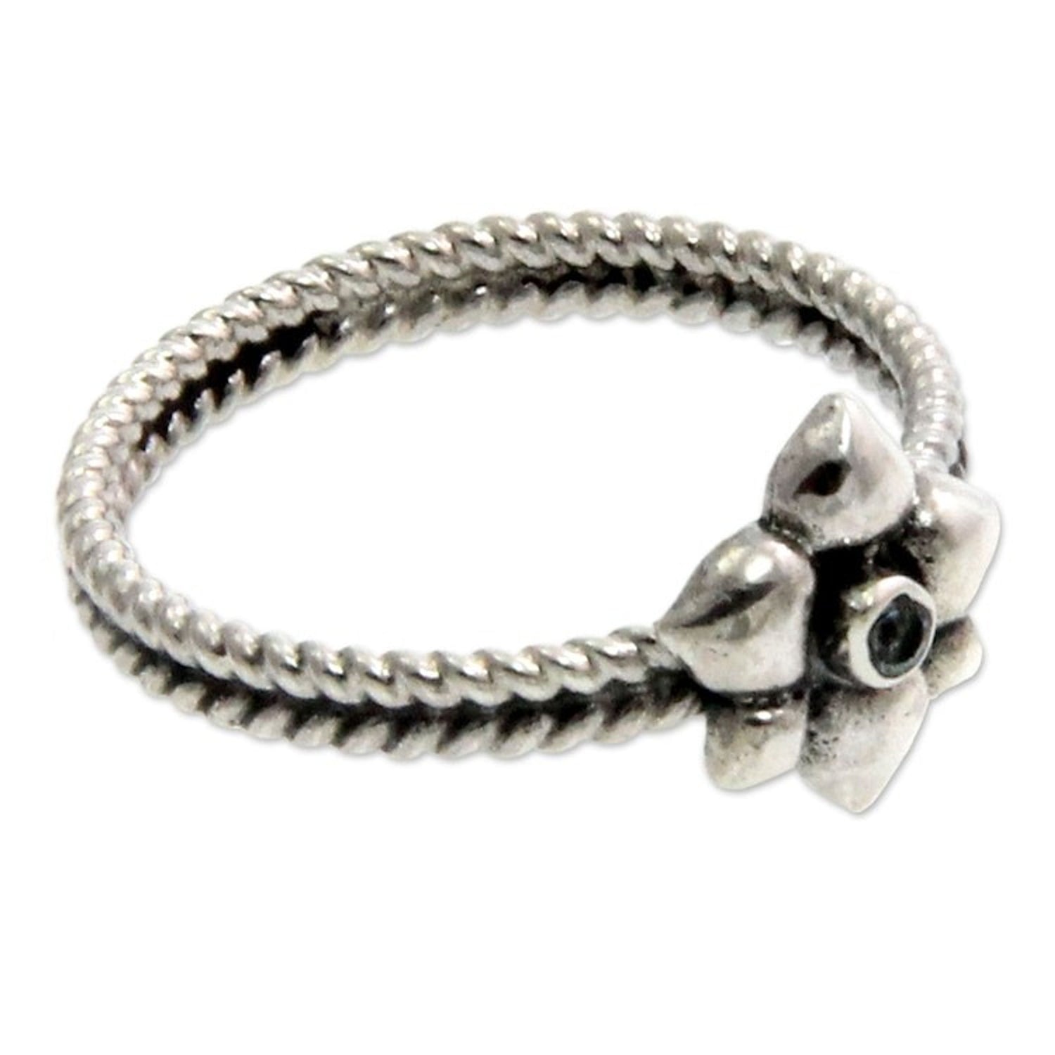 This Indonesian Sterling Silver and Blue Topaz Ring 'Narcissus of December' is a romantic and elegant accessory. Designed by Nyoman Rena, this handcrafted sterling silver ring features blue topaz glistening at the core of a narcissus flower, with oxidized contrasts that create an antique look. The piece, which captures both Balinese heritage and contemporary design, is a beautiful representation of the artisan's dedication to growth and innovation.