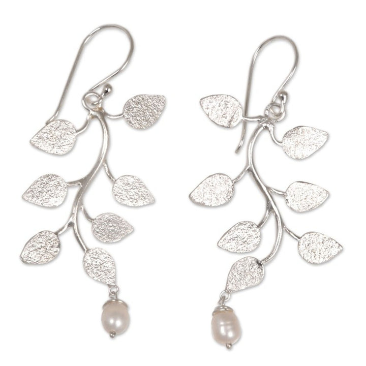 Indonesian Sterling Silver Cultured Pearl Dangle Earrings 'White Forest'