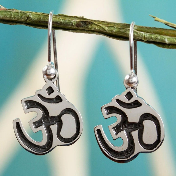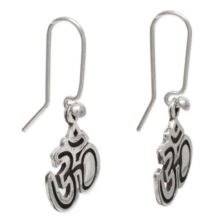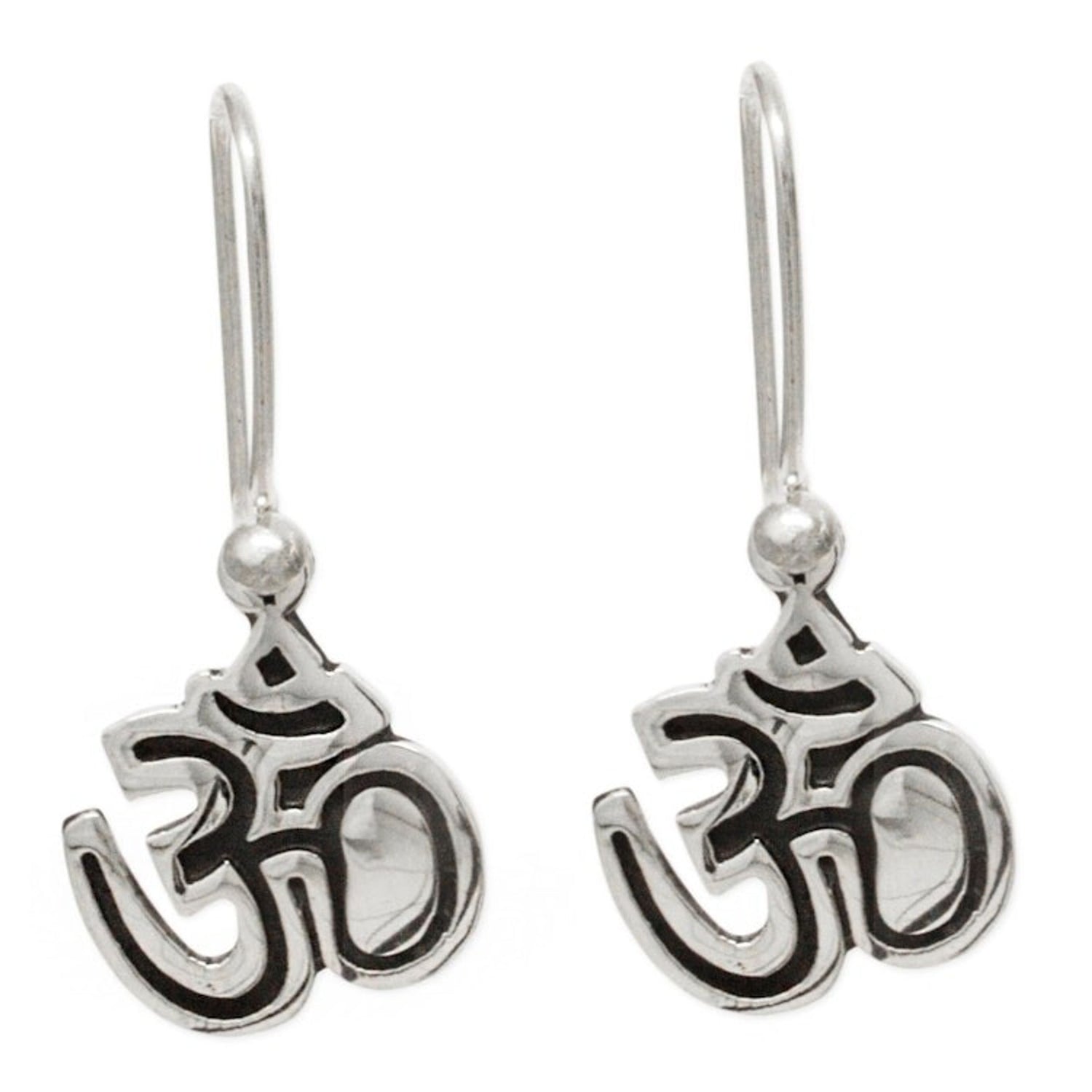 Inspirational Dangle Earrings Taxco Sterling Silver Jewelry 'Om Whisper'
