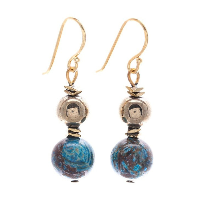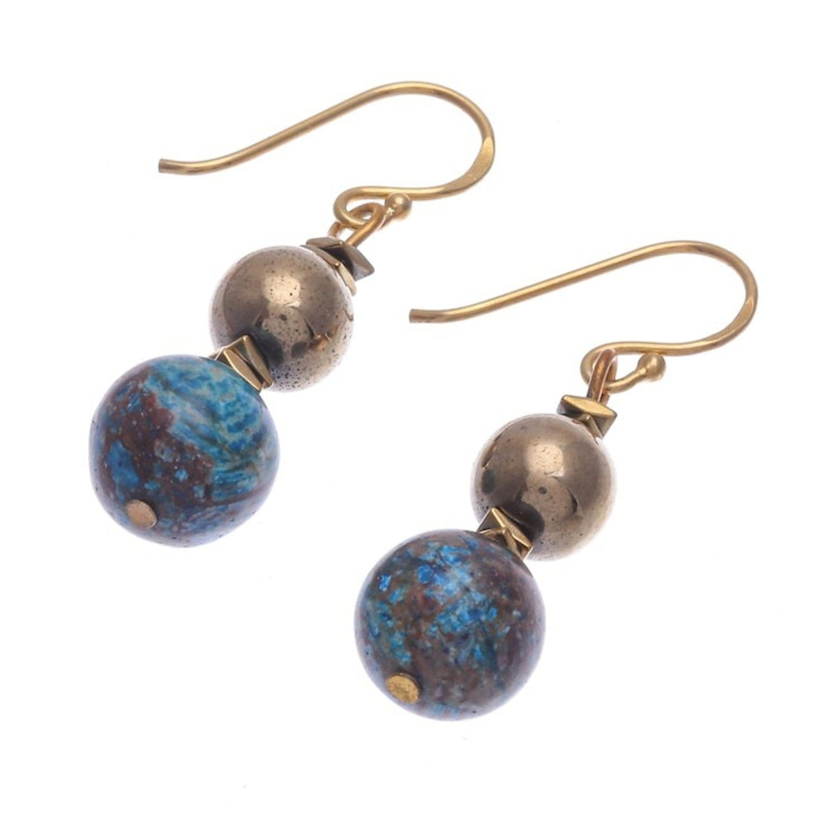 Jasper and Hematite Dangle Earrings with Gold Accented Hooks 'Golden Planet'