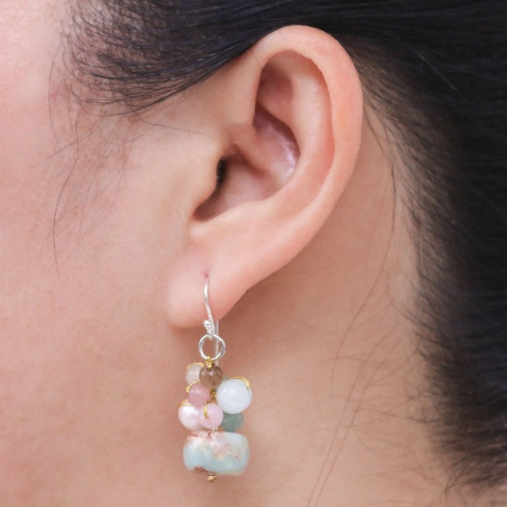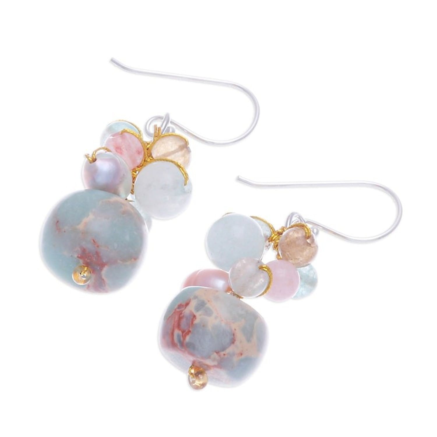 Jasper Cultured Pearl and Quartz Beaded and Hooked Earrings 'Cave Treasures'
