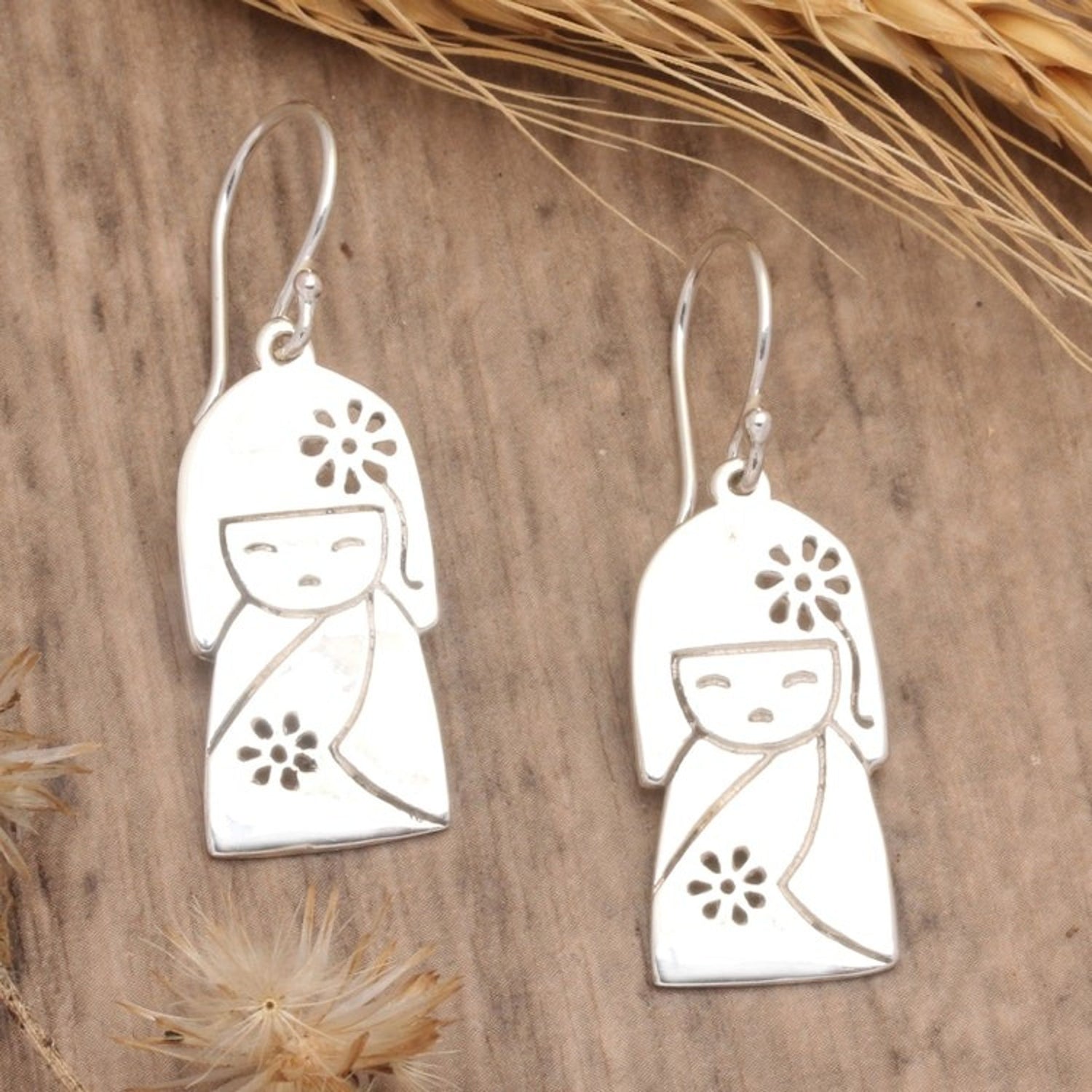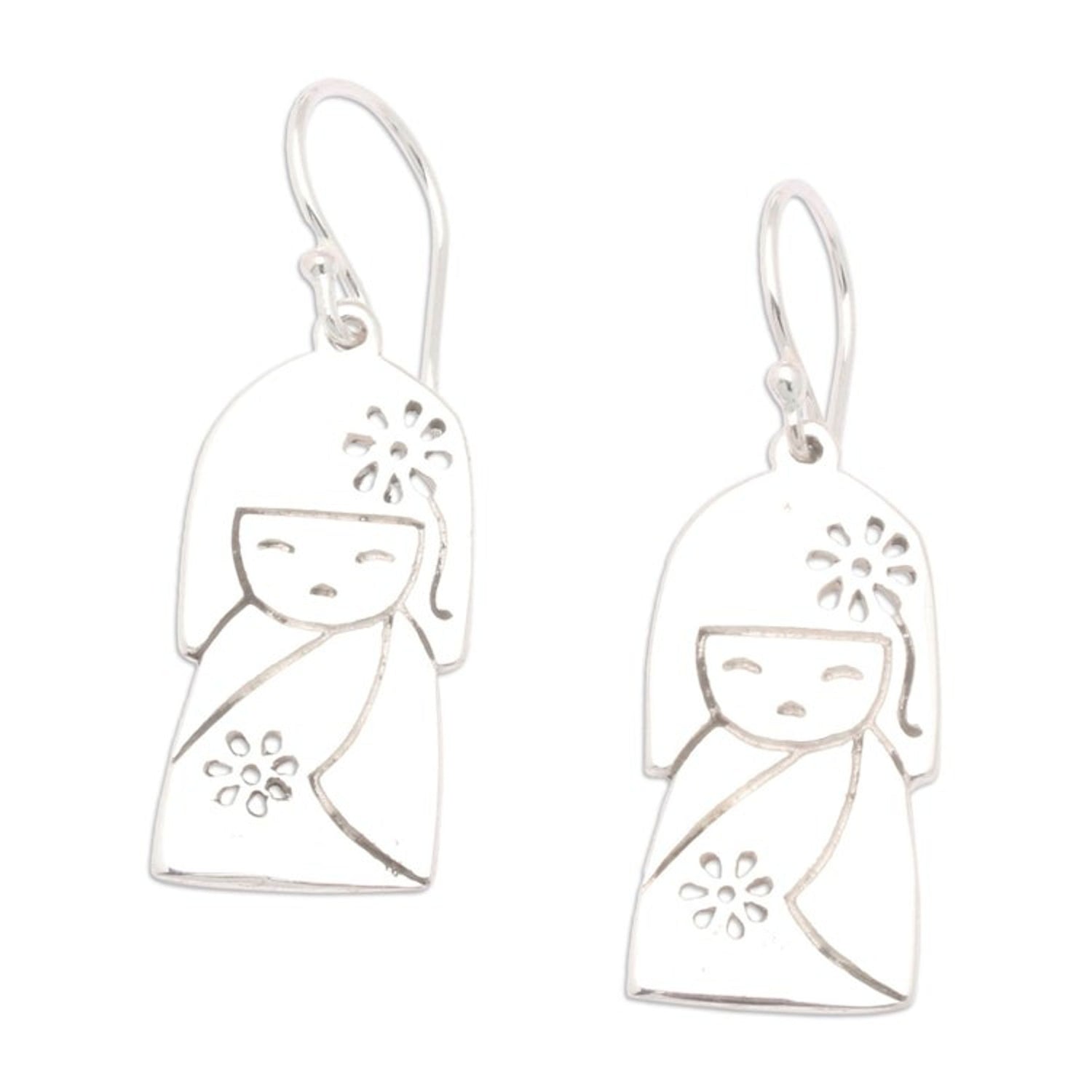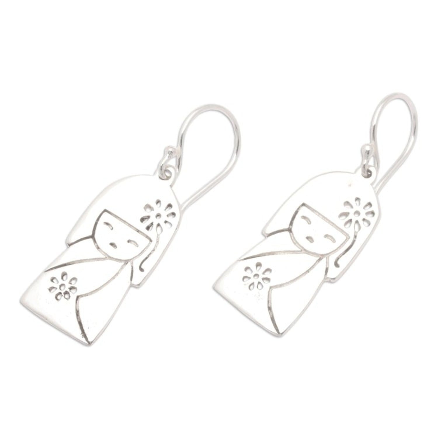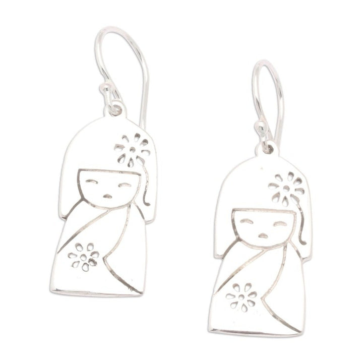 Jizo Girl-Themed Sterling Silver Dangle Earrings from Bali 'Jizo Spirit'