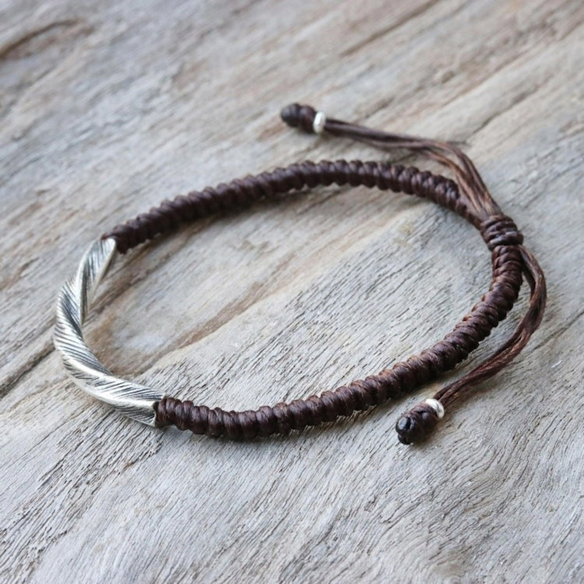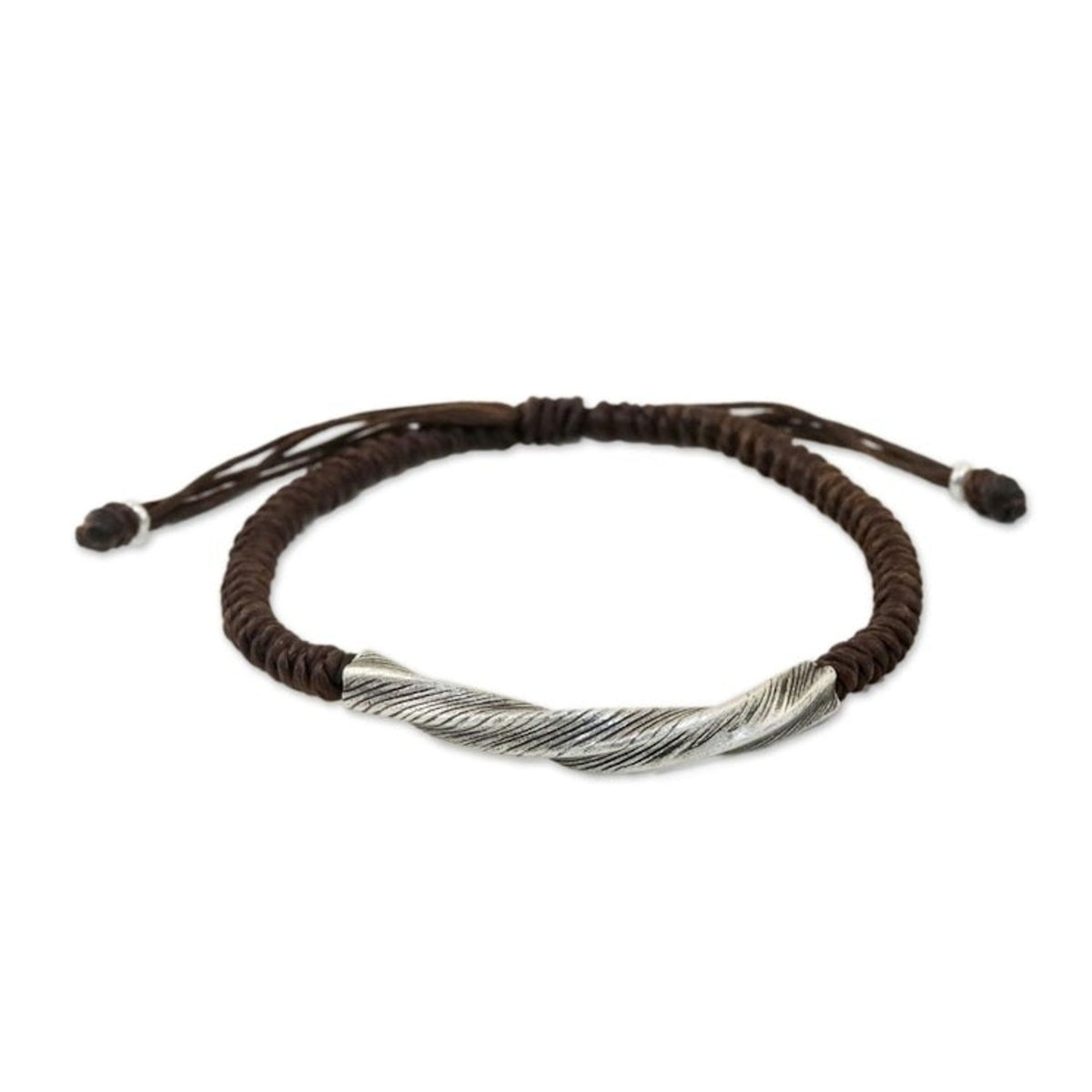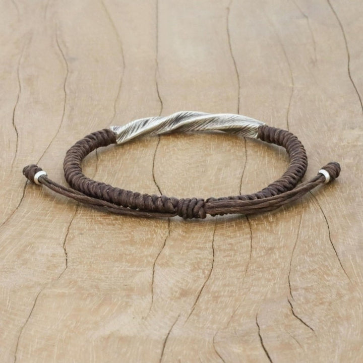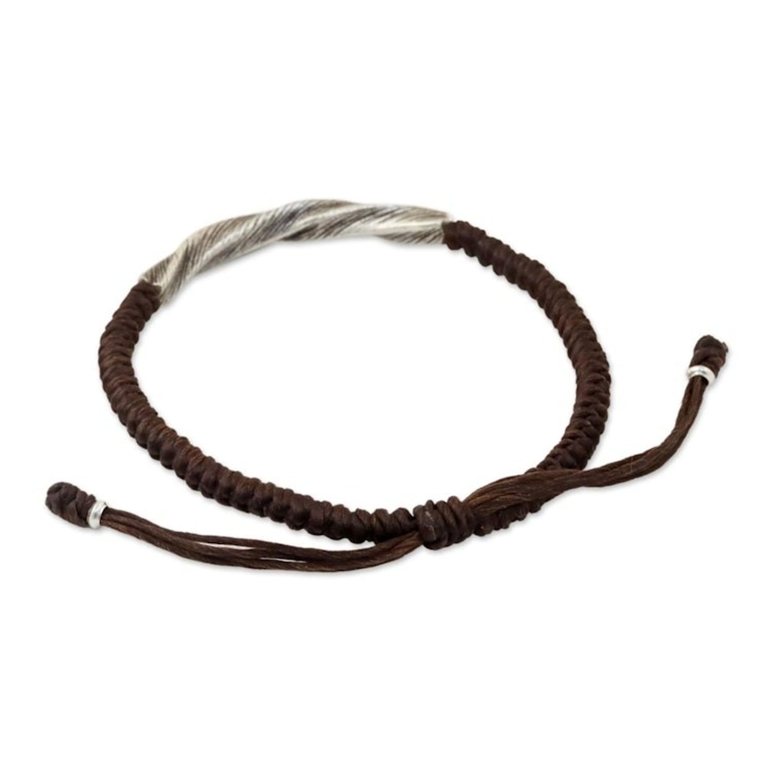 This Karen Silver Wristband Bracelet in Brown from Thailand 'Karen Twist in Brown' is a striking and elegant accessory. Designed by Napapat, this wristband bracelet features a striking, twisting pendant handcrafted of Karen hill tribe silver on a hand-braided brown cord. The piece, which blends ethnic Thai influences with modern durability, is a beautiful representation of the artisan's patience, imagination, and heartfelt artistry.