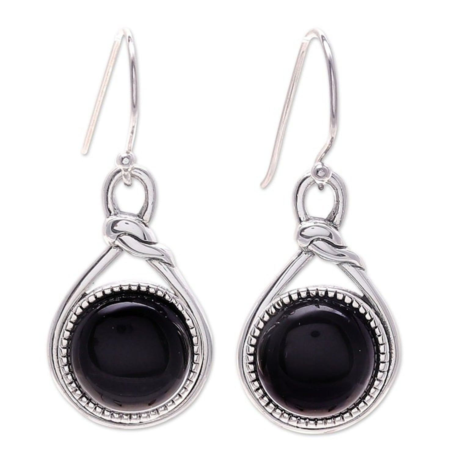 Knot Pattern Black Onyx Dangle Earrings from Thailand 'Enigmatic Knot'