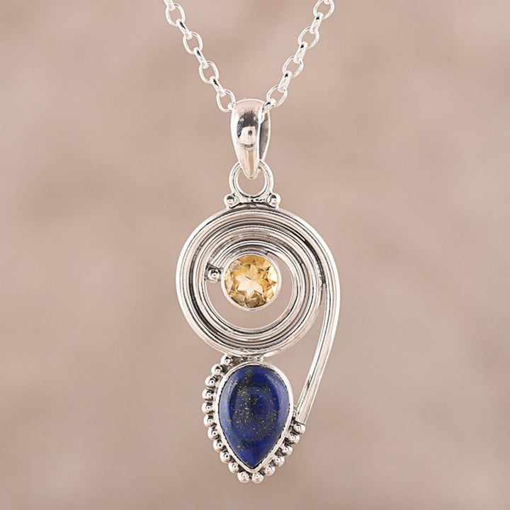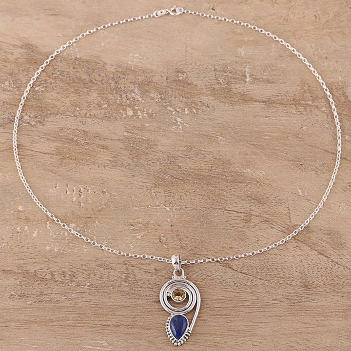 Lapis Lazuli and Citrine Pendant Necklace from India 'Wondrous Coil'