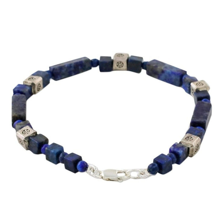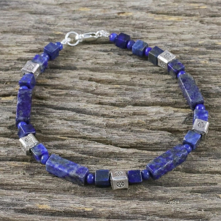 Lapis Lazuli and Silver Beaded Bracelet from Thailand 'Indigo Dream'
