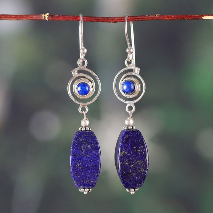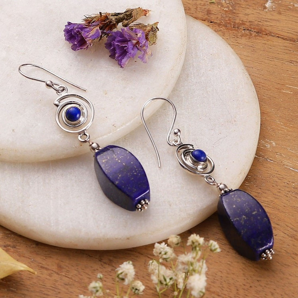 Lapis Lazuli and Sterling Silver Dangle Earrings from India 'Out to Lunch'