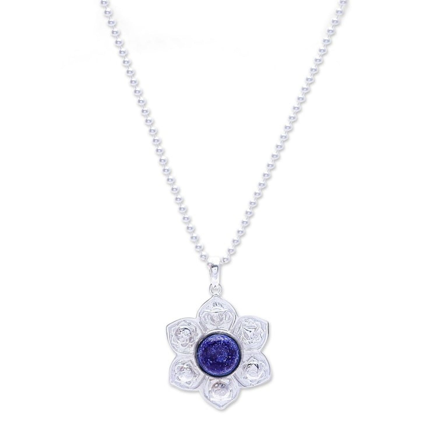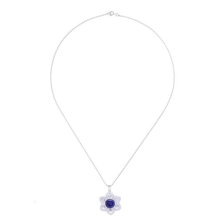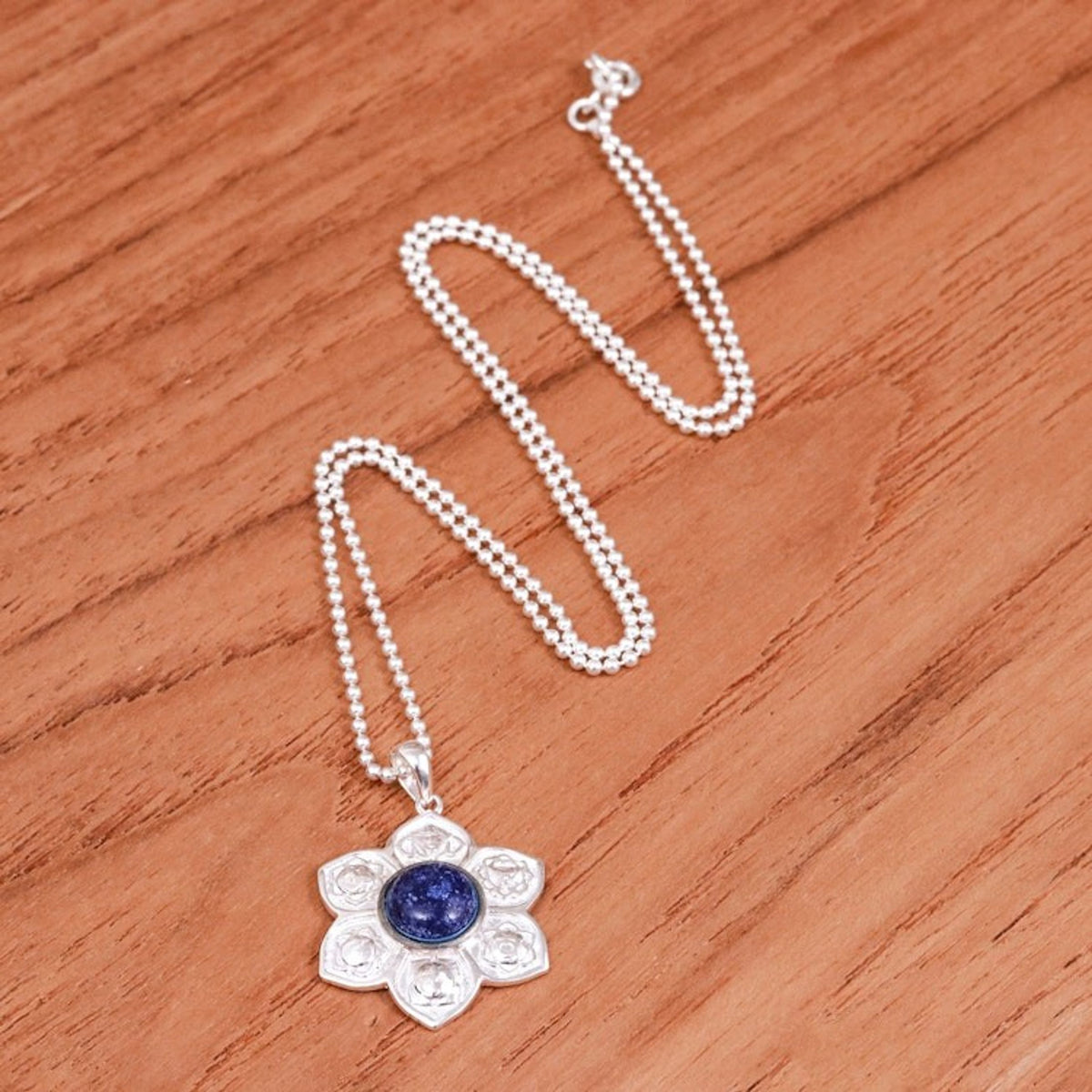 Lapis Lazuli and Sterling Silver Floral Necklace 'Chakra Regal Spirit'