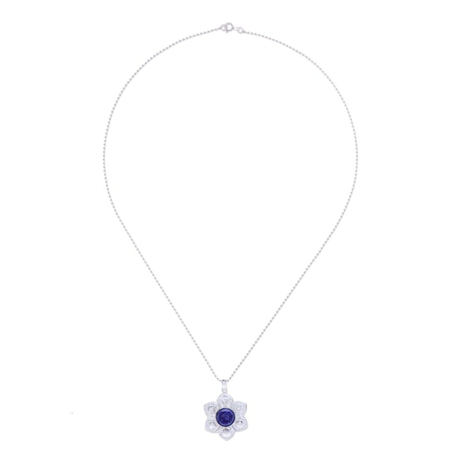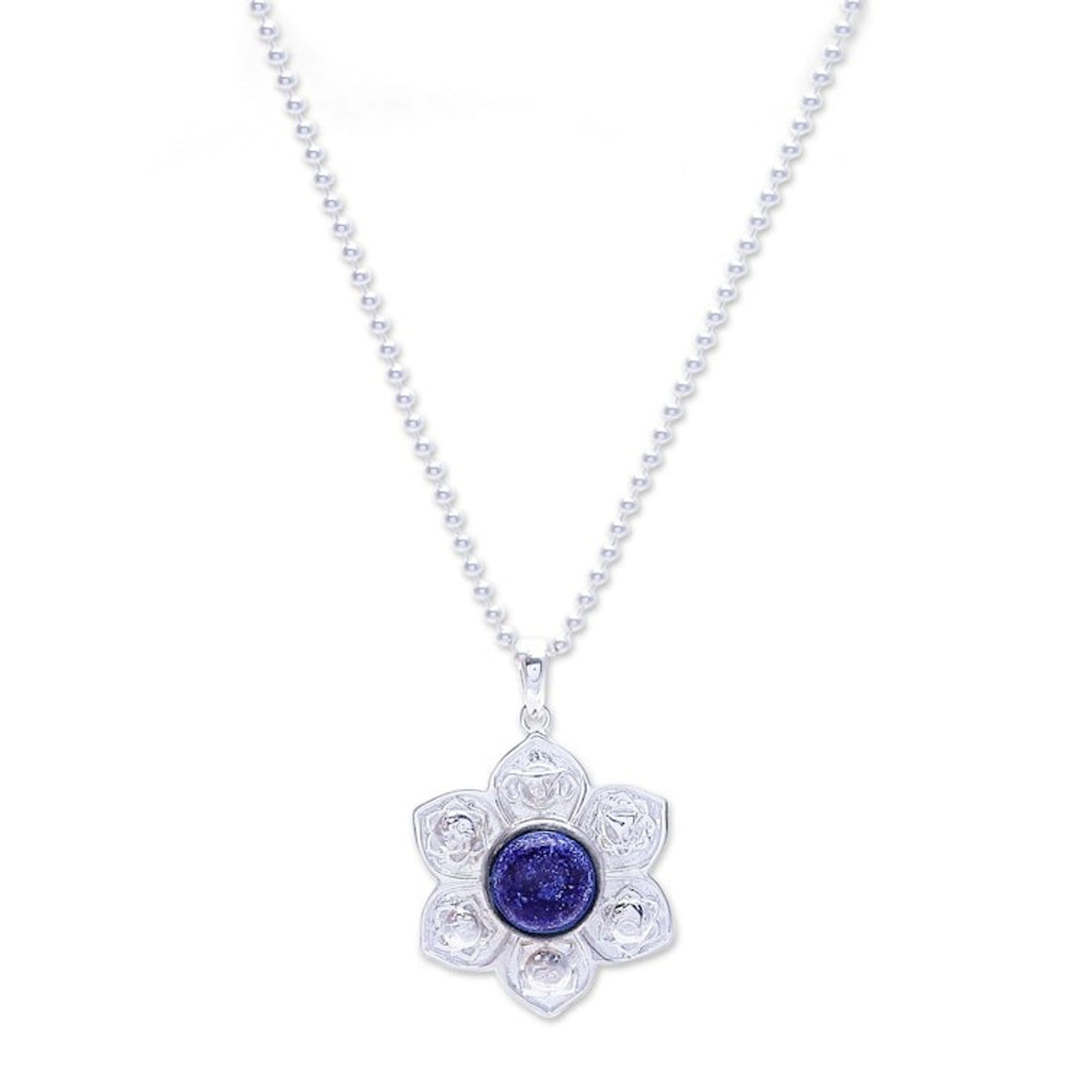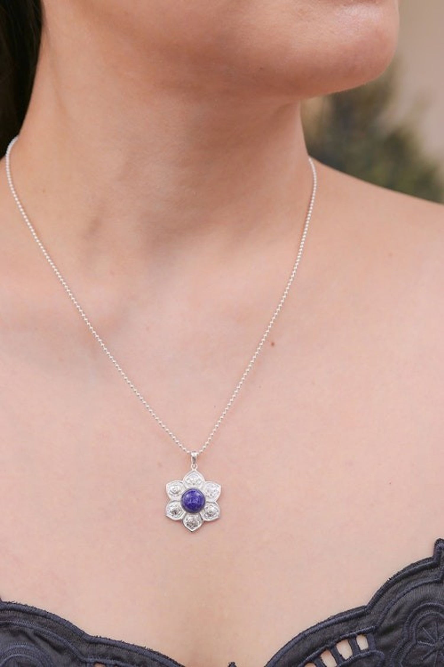Lapis Lazuli and Sterling Silver Floral Necklace 'Chakra Regal Spirit'