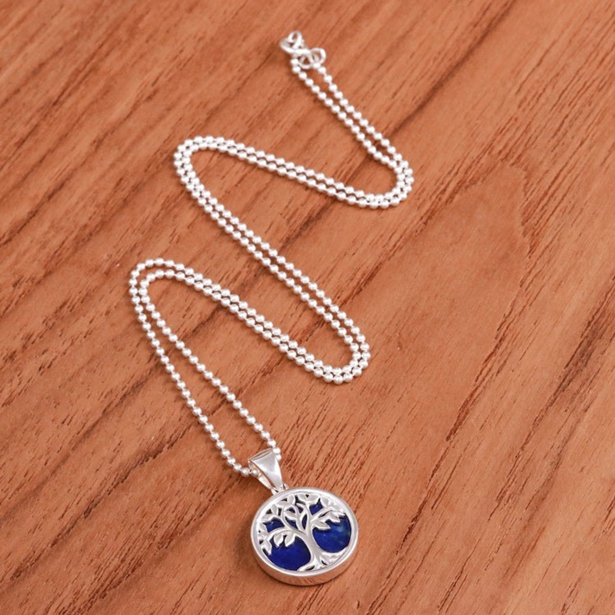 Lapis Lazuli and Sterling Silver Tree of Life Necklace 'Haven in Lapis'