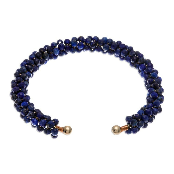 Lapis Lazuli Beaded Cuff Bracelet with Brass Fixtures 'Captivating Beauty'