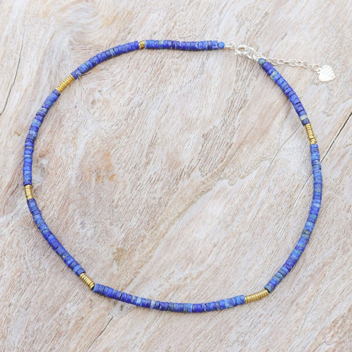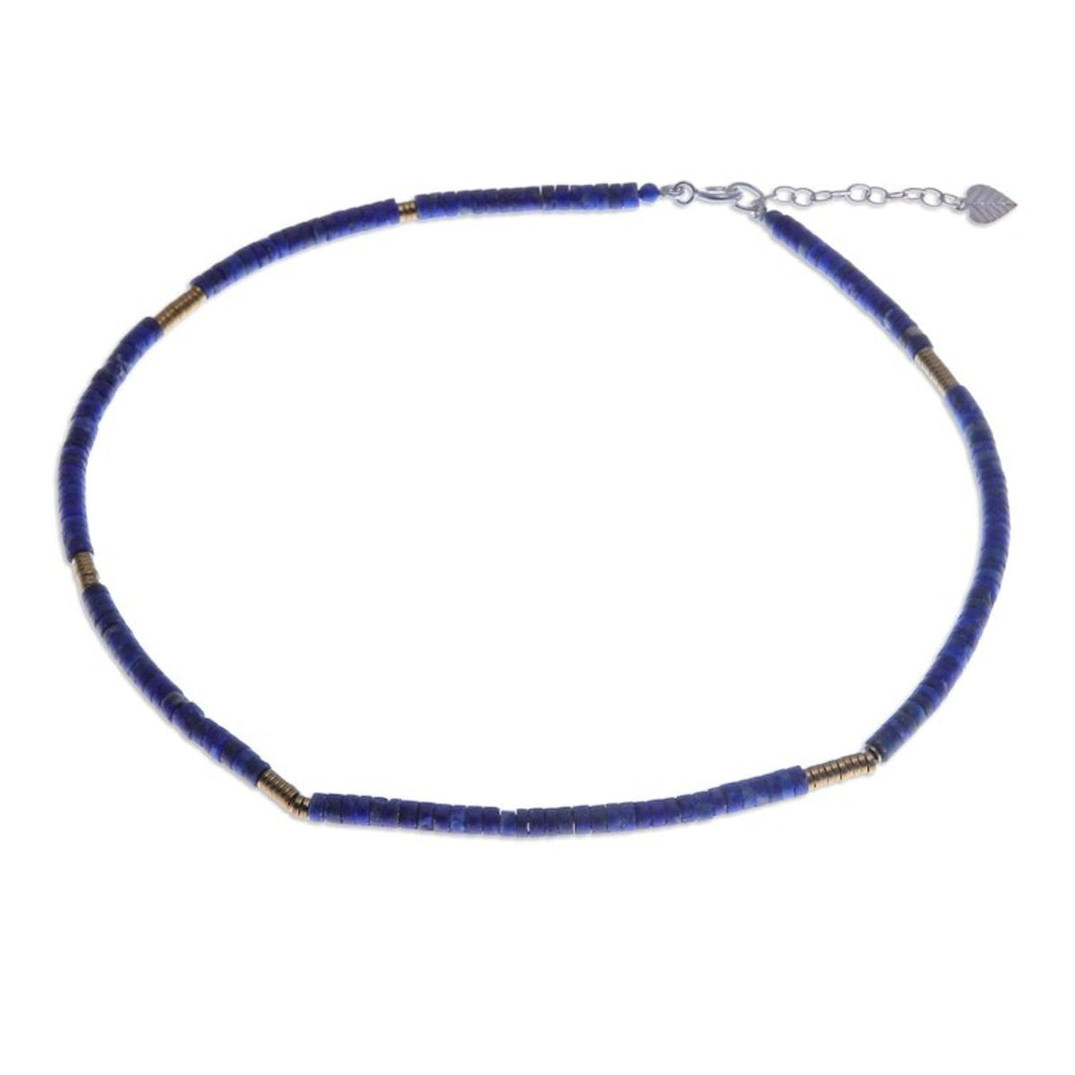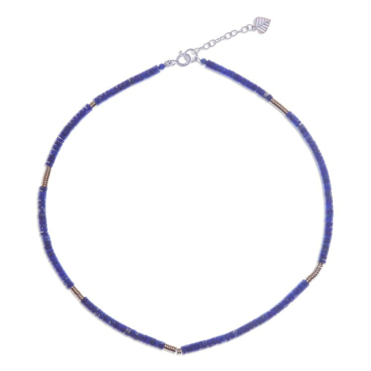 Handcrafted in Thailand with lapis lazuli, hematite, and a .925 sterling silver clasp and extender chain. The necklace is adjustable from 15.3 to 16.5 inches. It has a high-polish finish. Colors may vary slightly.