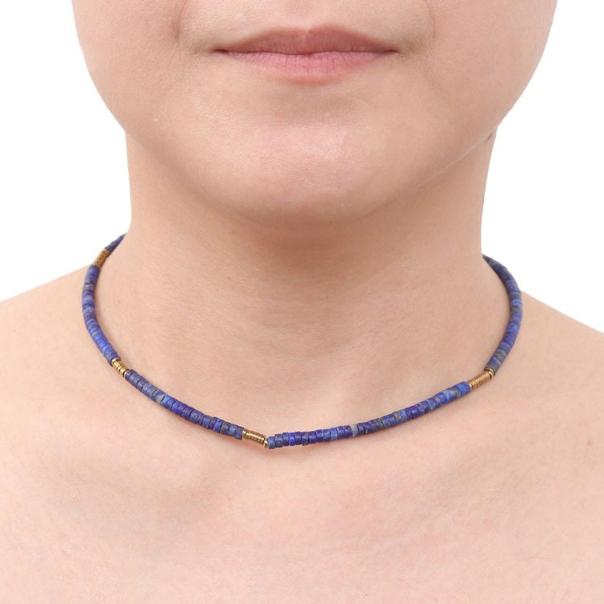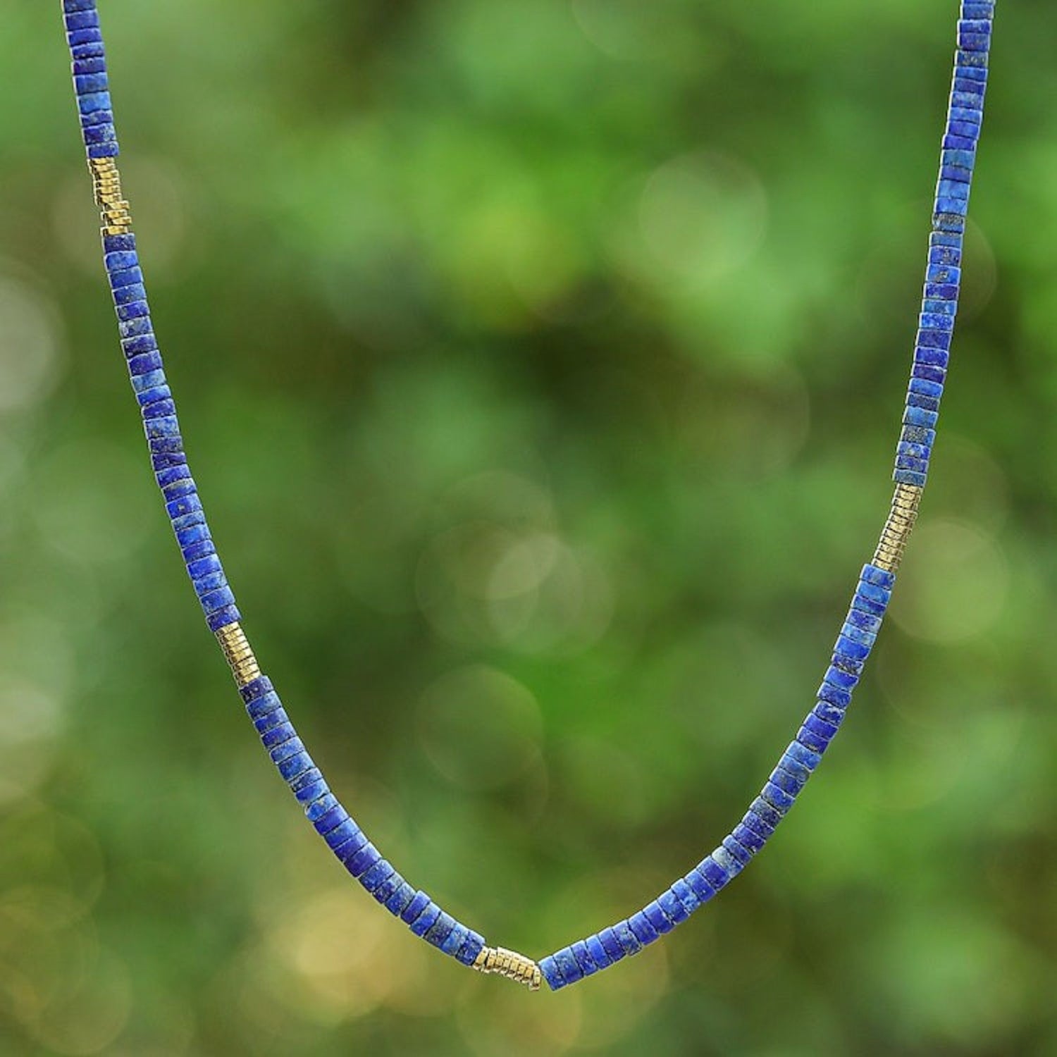 This Lapis Lazuli Hematite Beaded Strand Necklace from Thailand 'Blue Glam' is a captivating and lively accessory. Designed by Somluck Komolmith, this beaded strand necklace boasts a symphony of colors, with a stunning contrast between vivid lapis lazuli and exquisite hematite beads. The piece, which embodies originality and care, is a beautiful representation of the artisan's commitment to offering women timeless designs that blend artistry with personal expression.