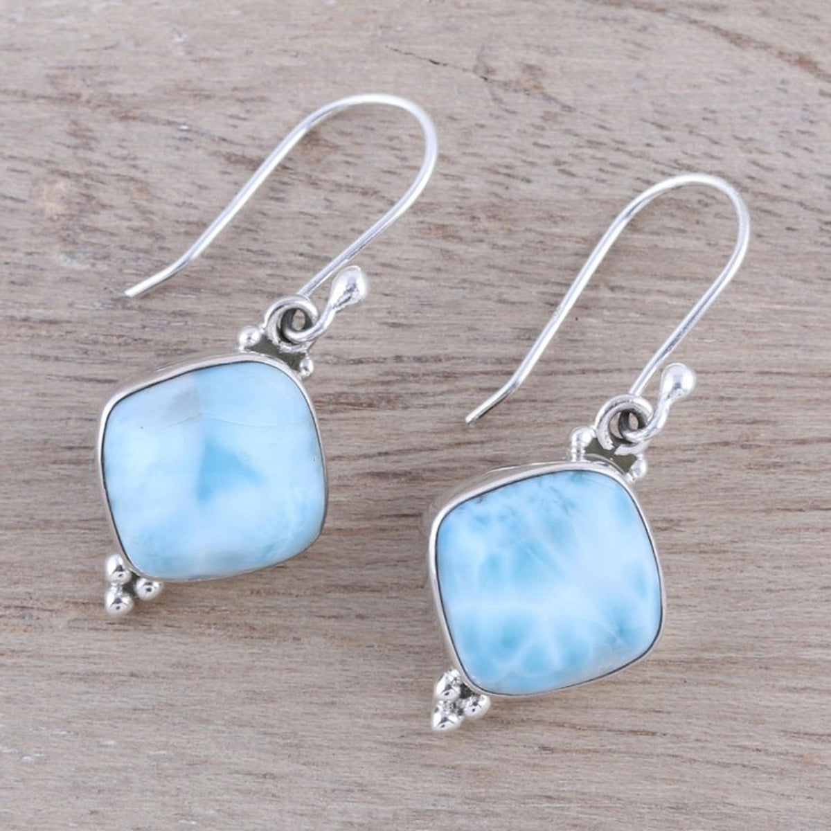 Larimar Dangle Earrings from India 'Gleaming Grandeur'