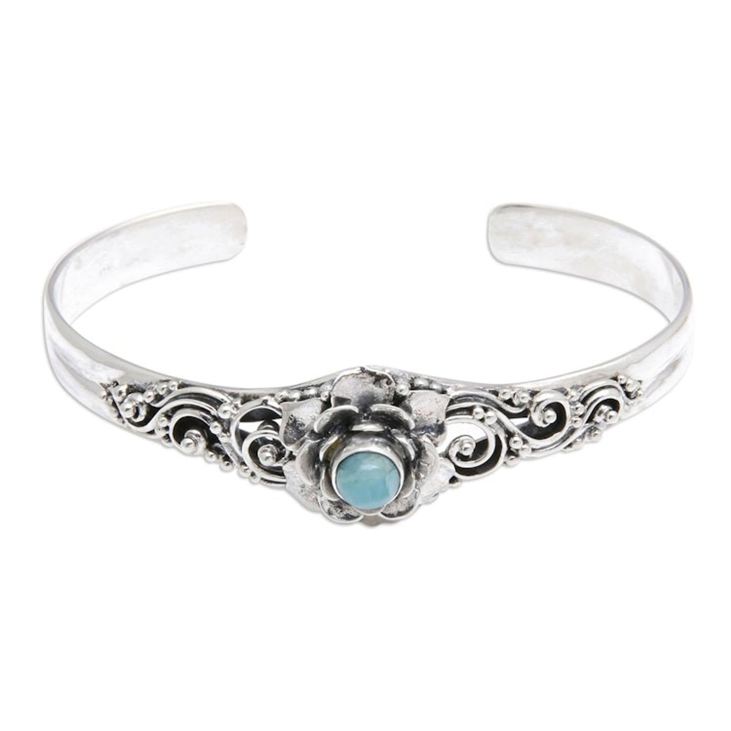 Larimar Sterling Silver Floral-Themed Cuff Bracelet 'Flower of Eternity'