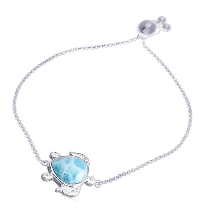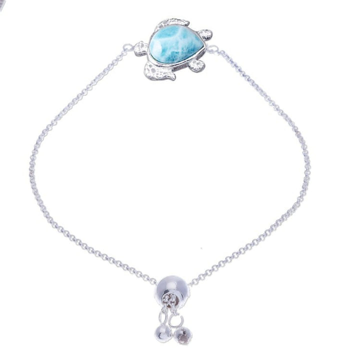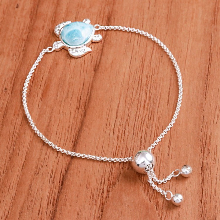 Larimar Sterling Silver Sea Turtle-Themed Pendant Bracelet 'Ocean Bound'